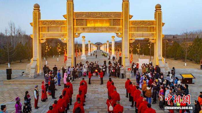2月10日,“赏花灯 游古建 品年俗”山西高平第四届炎帝灯会在炎帝陵景区正式启幕,万盏花灯璀璨亮相,“1+5+N”系列活动全面上线。图为启幕仪式。中新网