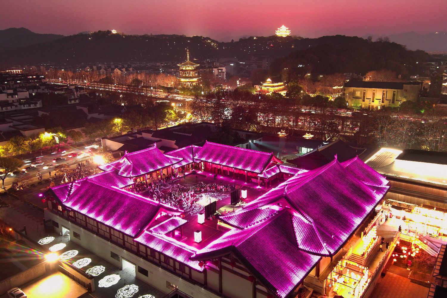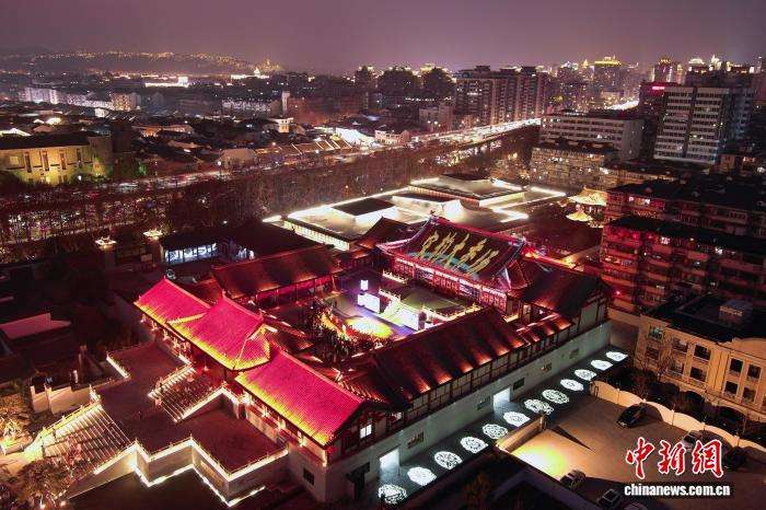 2月12日,德寿宫的“宋韵大秀场”在城市夜景中格外醒目。中新网