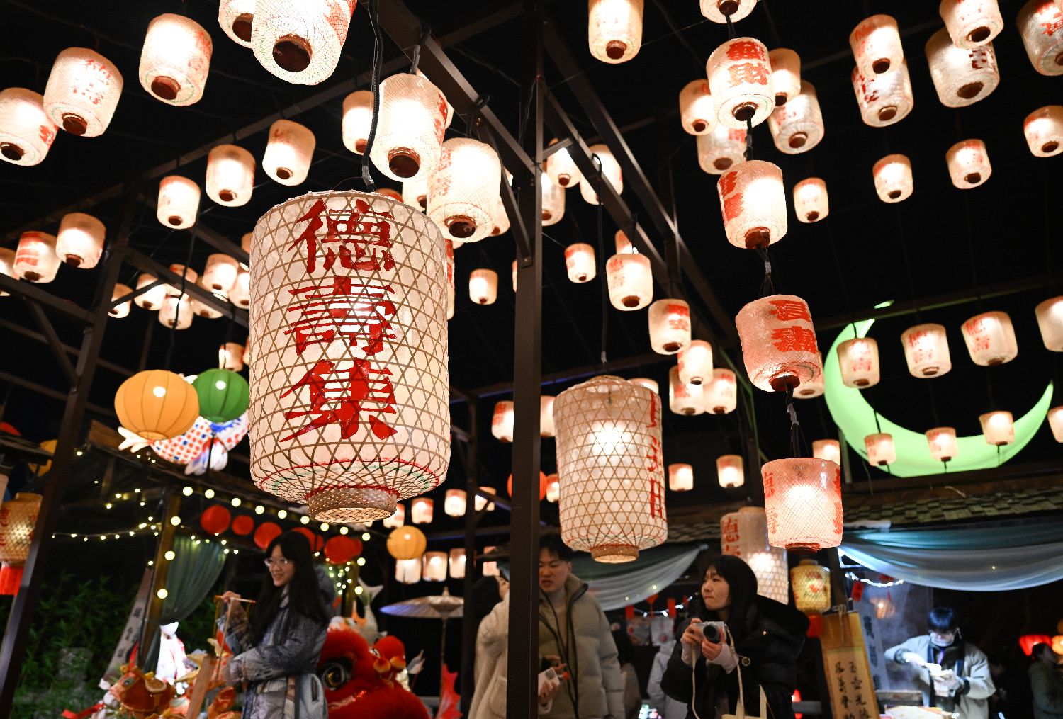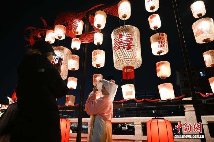 2月12日,彩灯高挂的“德寿集”吸引游人。中新网