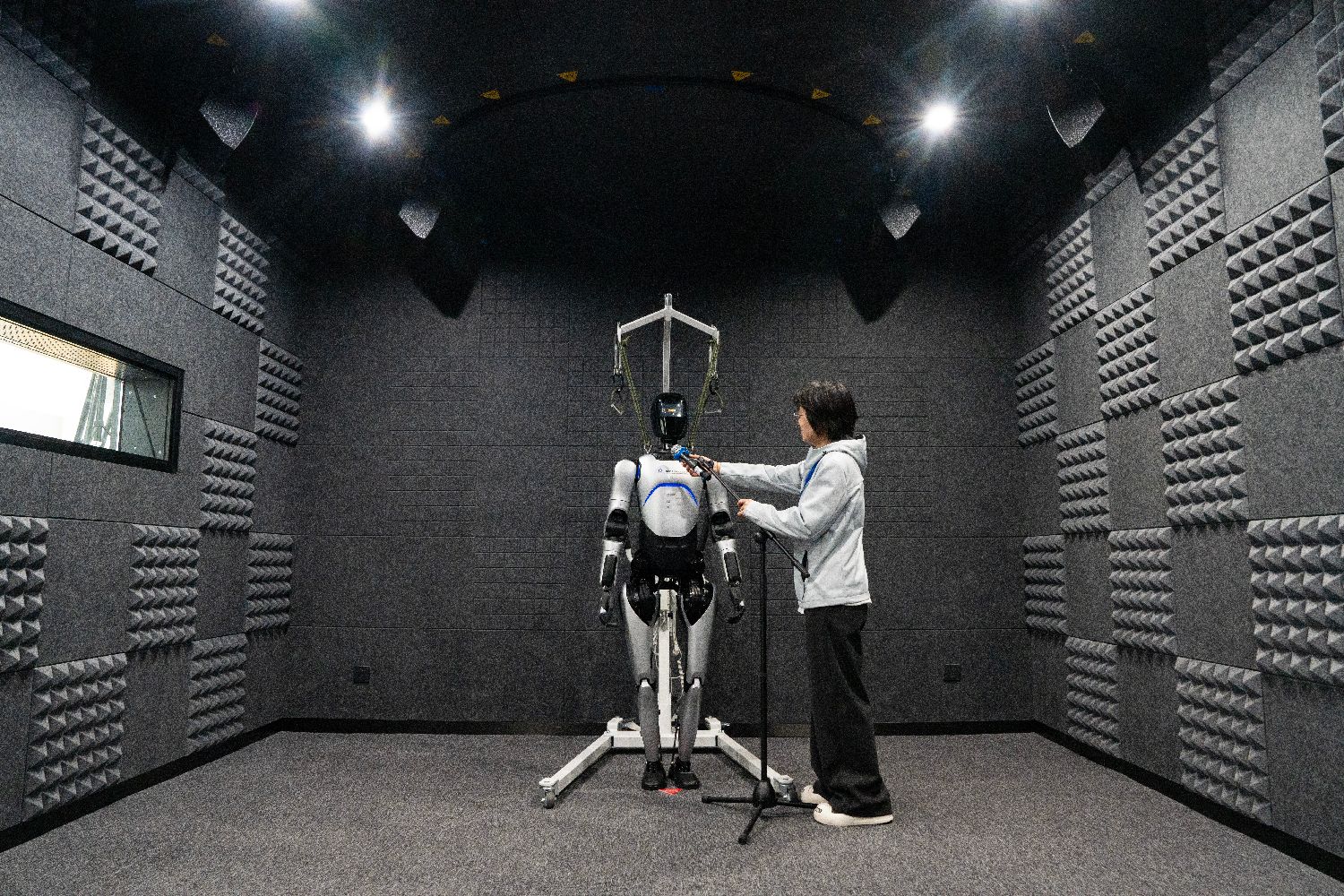 临近春节,位于浙江杭州西湖区的中国国家机器人检测与评定中心(总部)浙江检测中心内,不少人形机器人正接受安全等技术检测,通过者将获CR认证。图为2月12日,工作人员为机器人进行“听力测试”。中新社