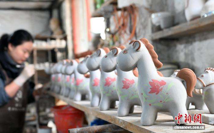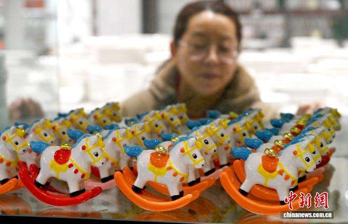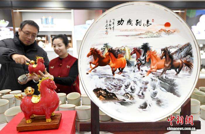 马年春节临近,河北邯郸峰峰矿区依托磁州窑非遗技艺推出数十款生肖文创产品,线上线下热销;同时,传统花馍通过电商直播走俏全中国,腊月订单激增。非遗与民俗共迎新春,传递浓浓年味。图为2月3日,峰峰矿区一家陶瓷企业展厅,市民在挑选马年主题的磁州窑文创产品。