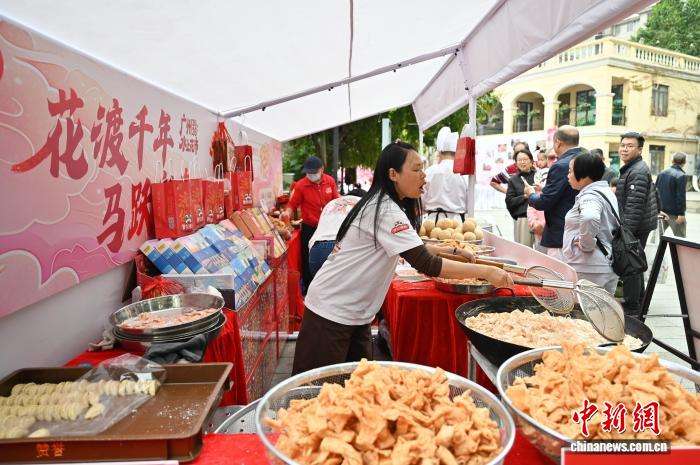 2月12日,工作人员制作广府“年味”小吃蛋散。中新网