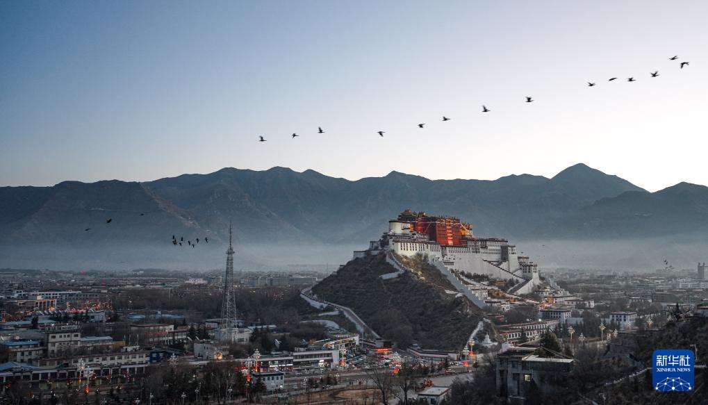 2月18日是农历春节大年初二,也是藏历新年大年初一。坐落于西藏拉萨的布达拉宫在新年晨光照耀下熠熠生辉。