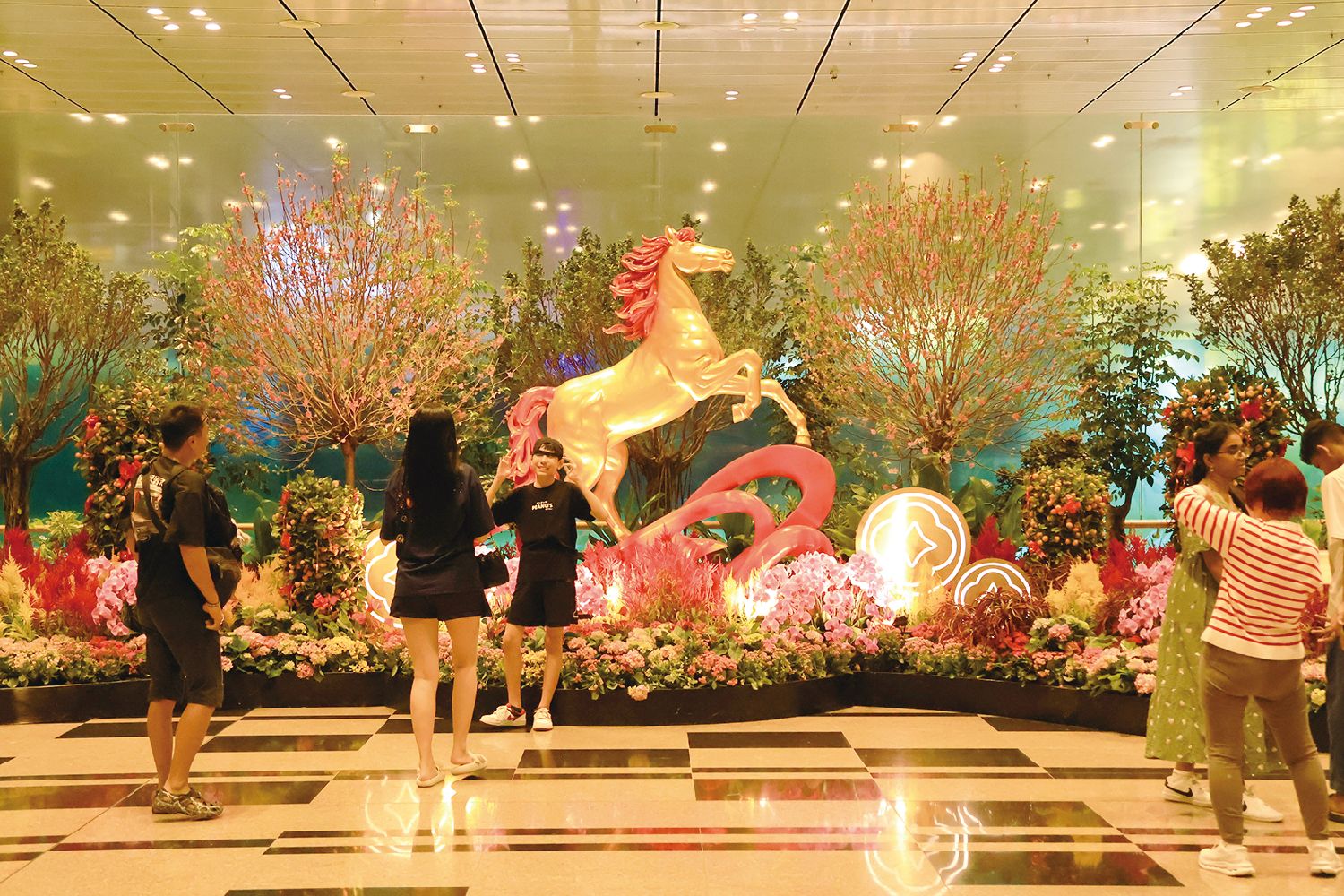 当地时间2月18日,新加坡樟宜机场的一座马年雕塑吸引入境旅客“打卡”。视觉中国