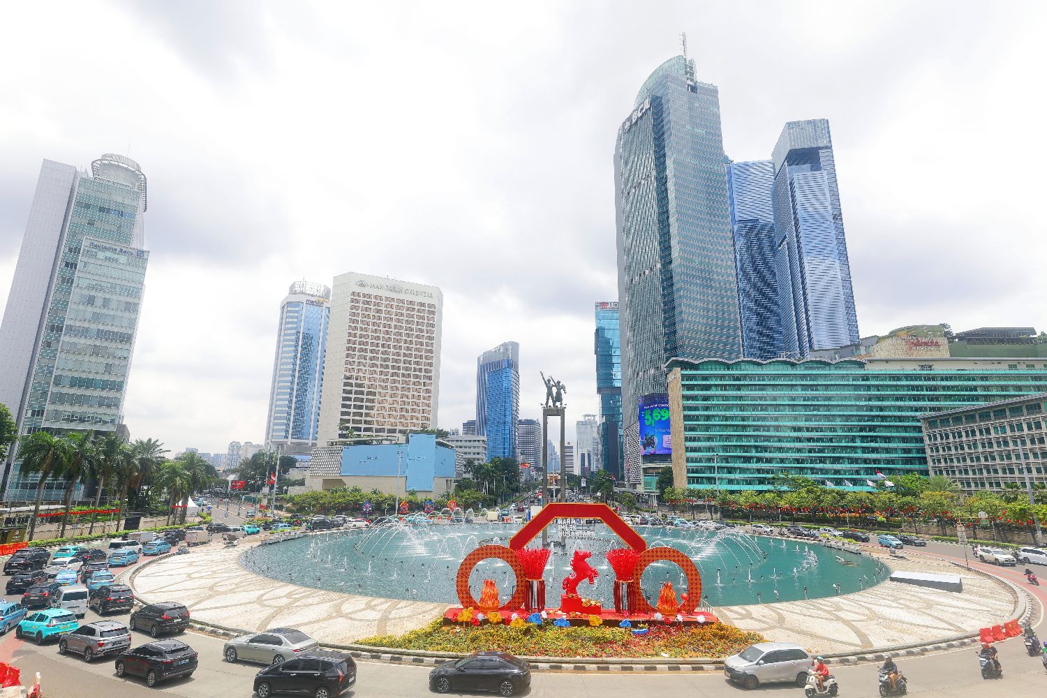 当地时间2月18日,印度尼西亚首都雅加达市中心地标建筑HI环岛的马年春节主题装置,成为市民和游客打卡热点。2026年春节期间,印尼政府首次从国家层面举办春节庆典。中新社