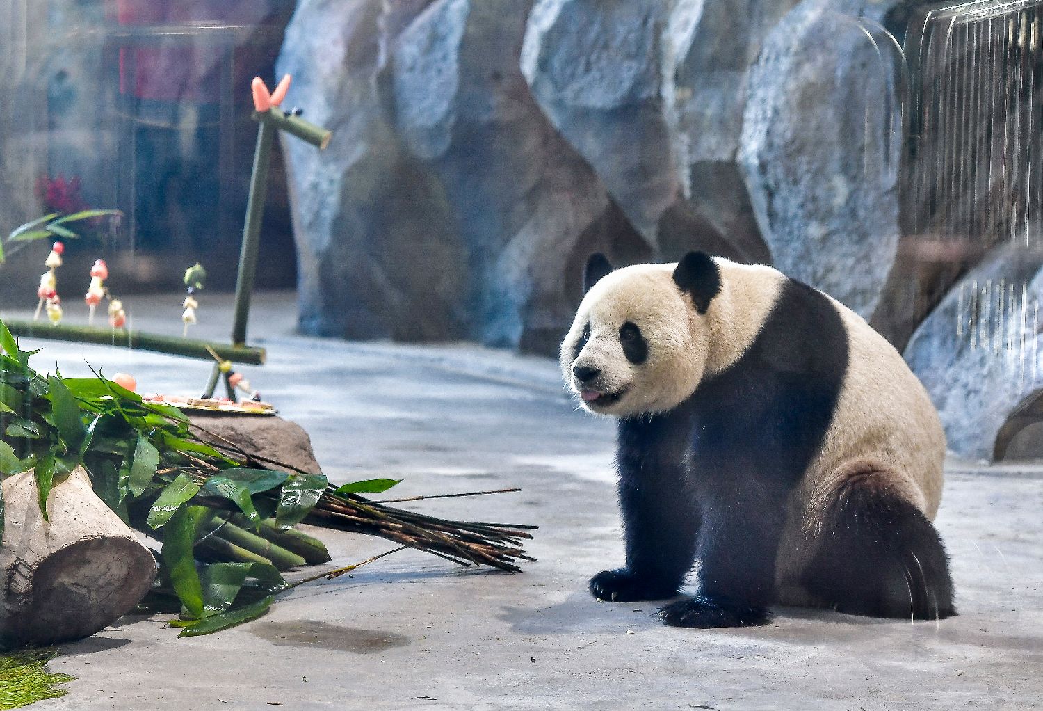 大熊猫“德瑞”品尝工作人员特意准备的新春大餐。中新网