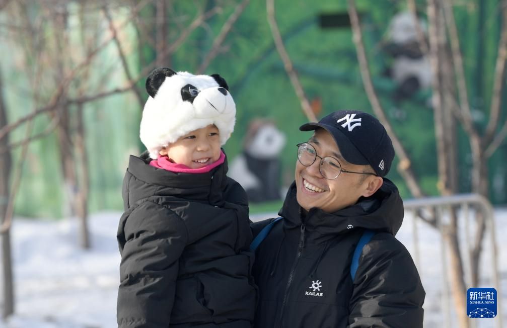 一名头戴大熊猫棉帽的小游客准备进入大熊猫馆参观。新华社