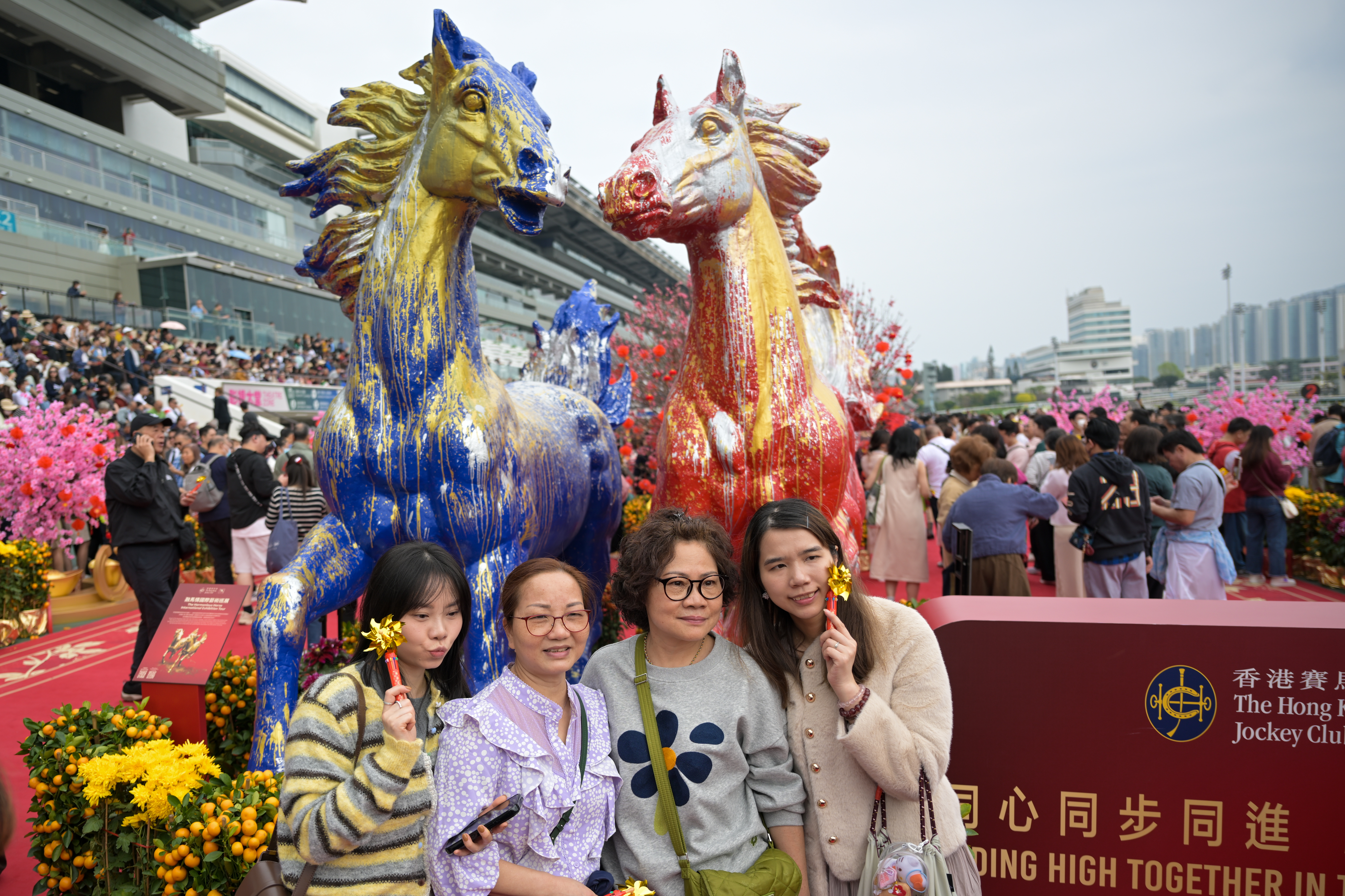 2月19日,沙田马场2026马年赛马日现场,观众拍照留念。中新社