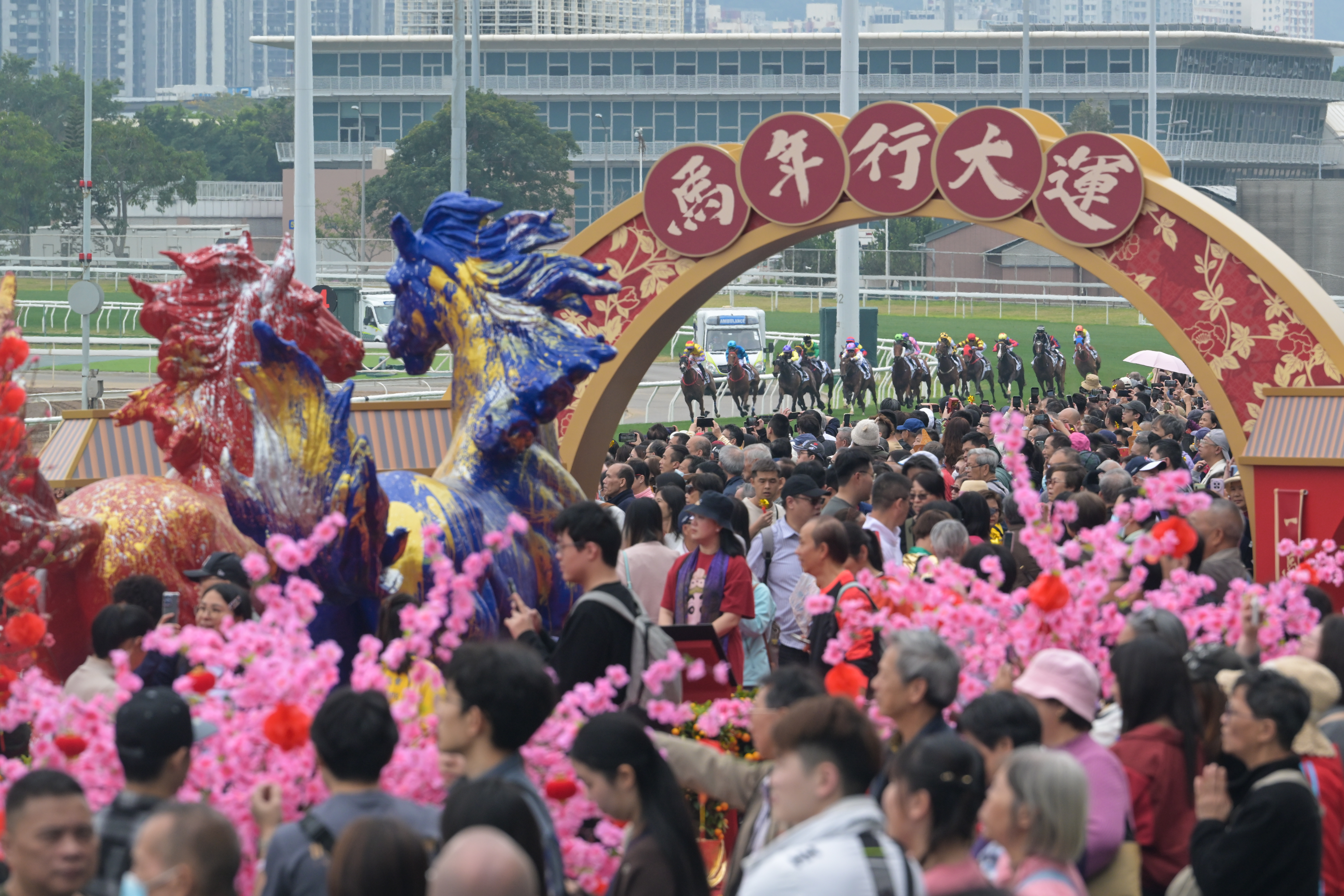 2月19日,沙田马场2026马年赛马日现场。中新社