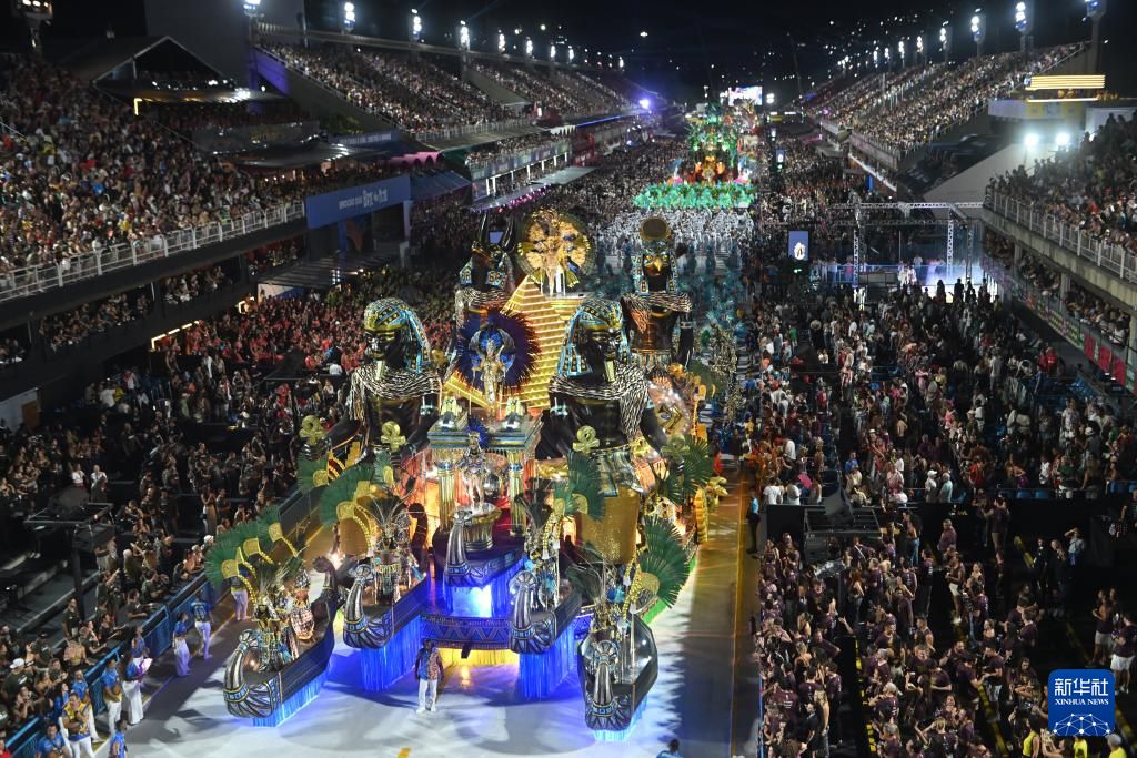 2026年里约狂欢节于18日凌晨闭幕。图为2月17日晚,狂欢节游行现场。