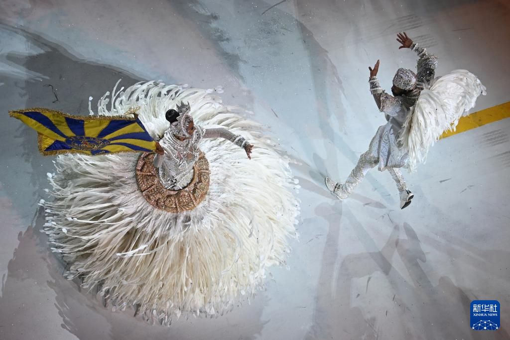2月18日凌晨,桑巴舞者参加在巴西里约热内卢举行的2026年狂欢节游行。