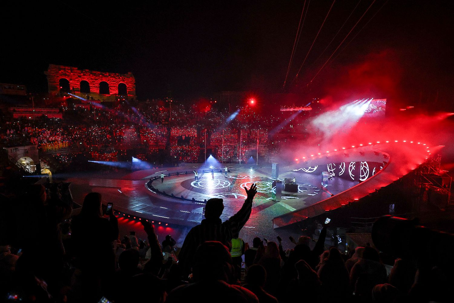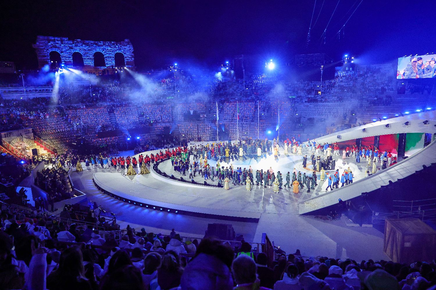 当地时间2月22日晚,2026年米兰-科尔蒂纳冬奥会闭幕式在意大利维罗纳奥林匹克竞技场举行。图为闭幕式现场。中新社