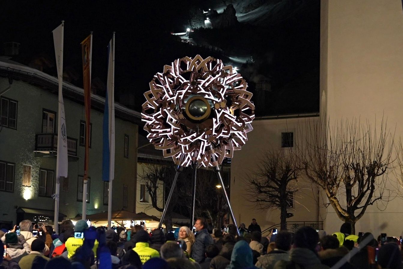 位于意大利科尔蒂纳丹佩佐迪博纳广场的冬奥会火炬台奥运圣火熄灭。中新社