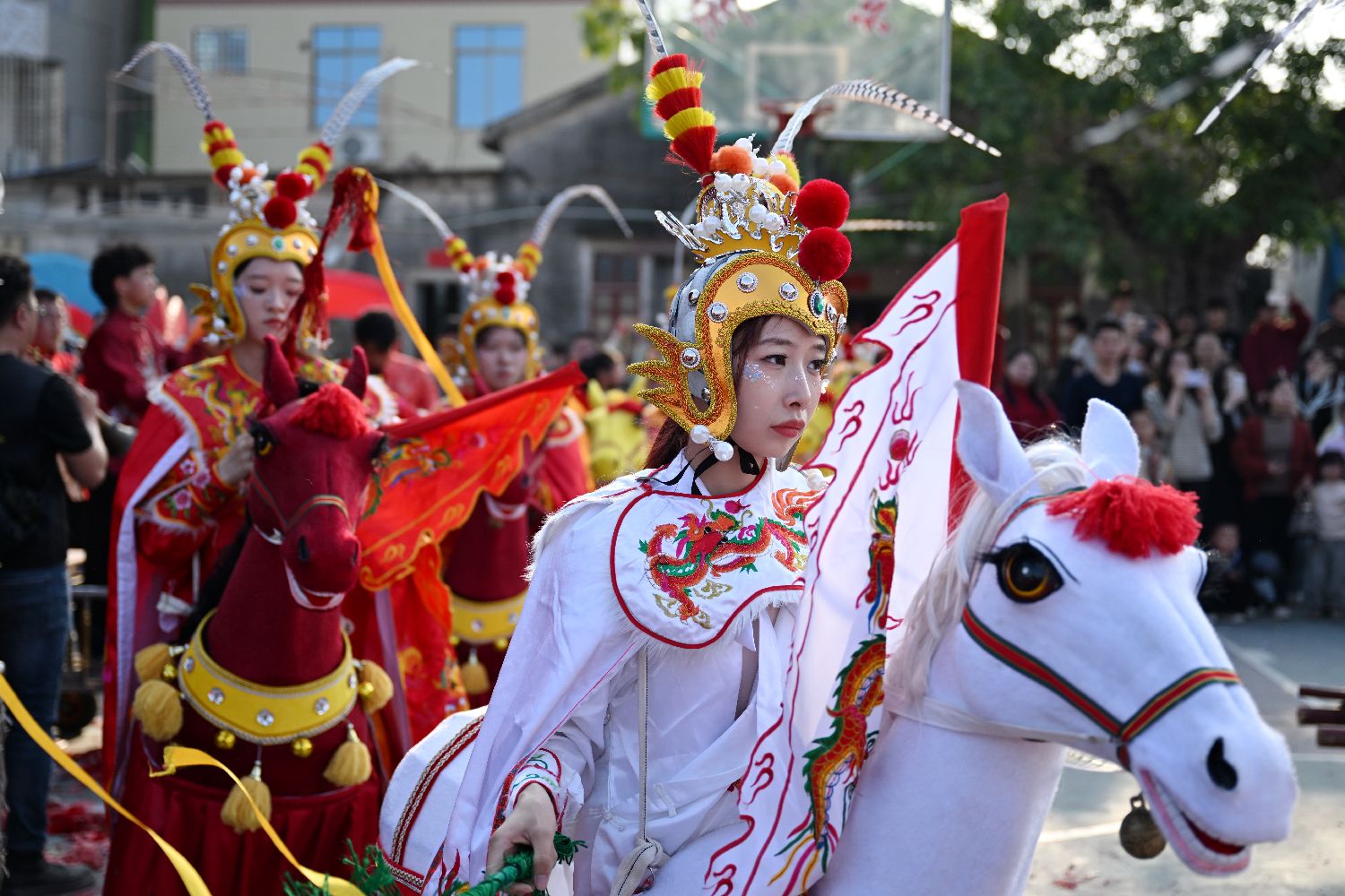 2月21日,广东潮州洲东村开展民俗活动贺新春。图为布马舞表演。中新社