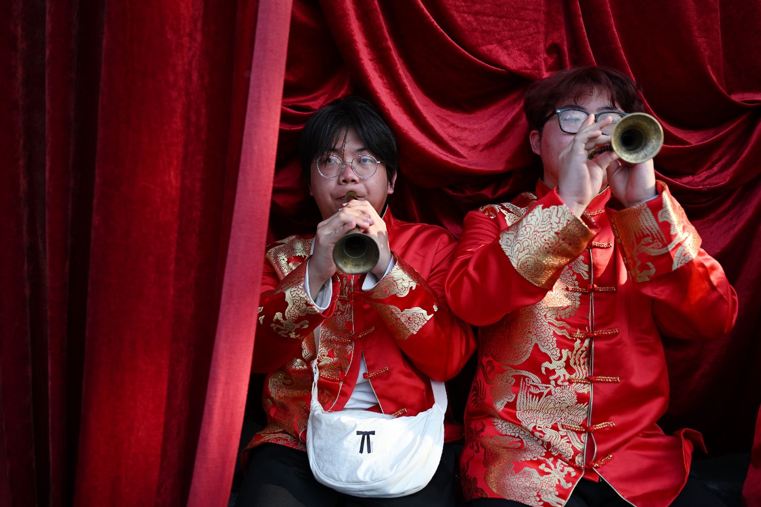 2月21日,洲东村民俗活动上的潮州音乐表演。中新社