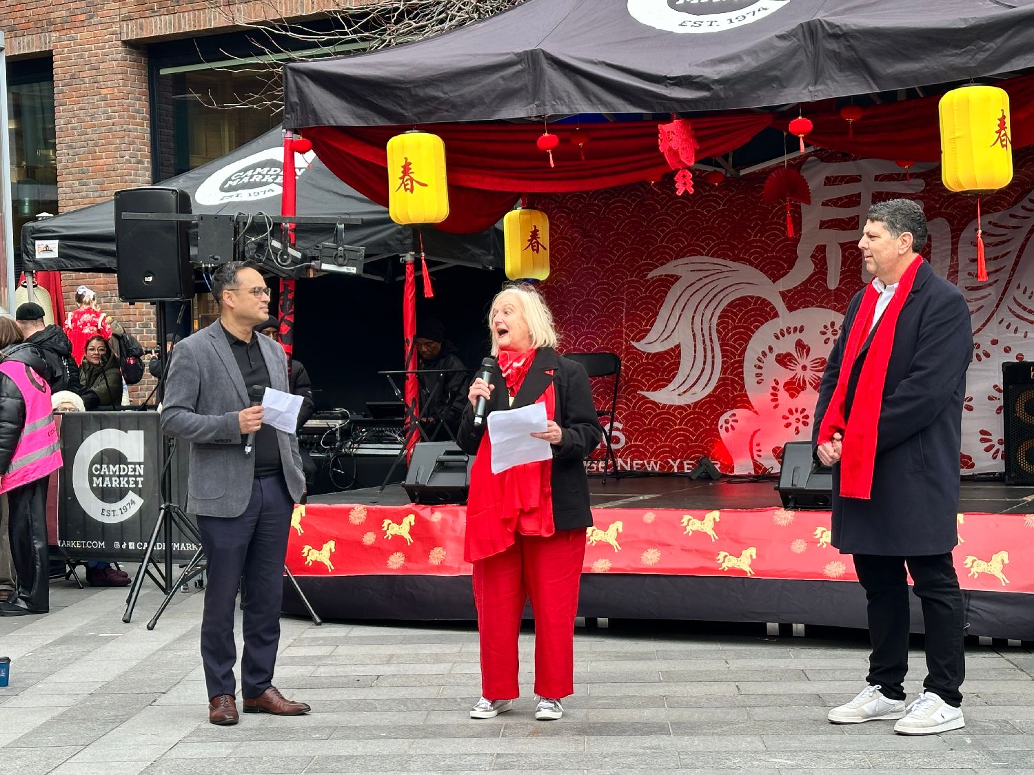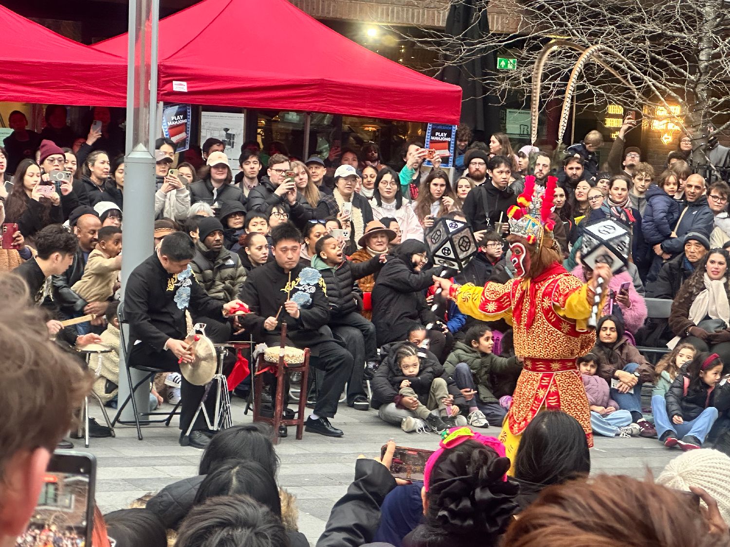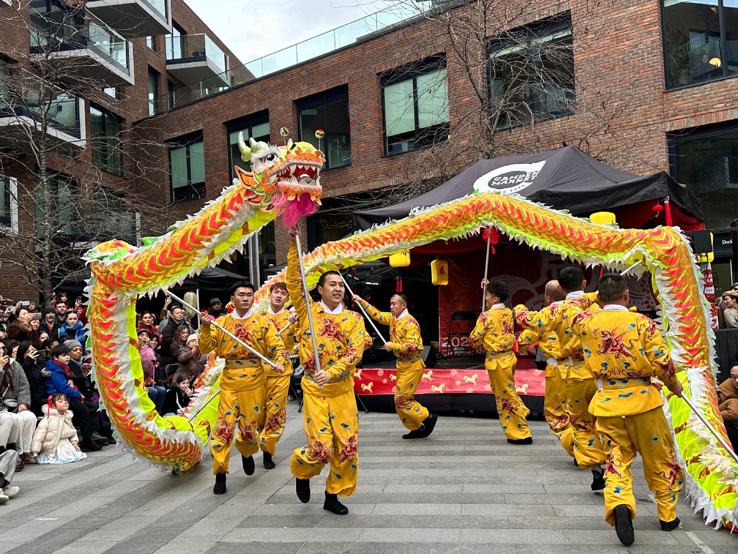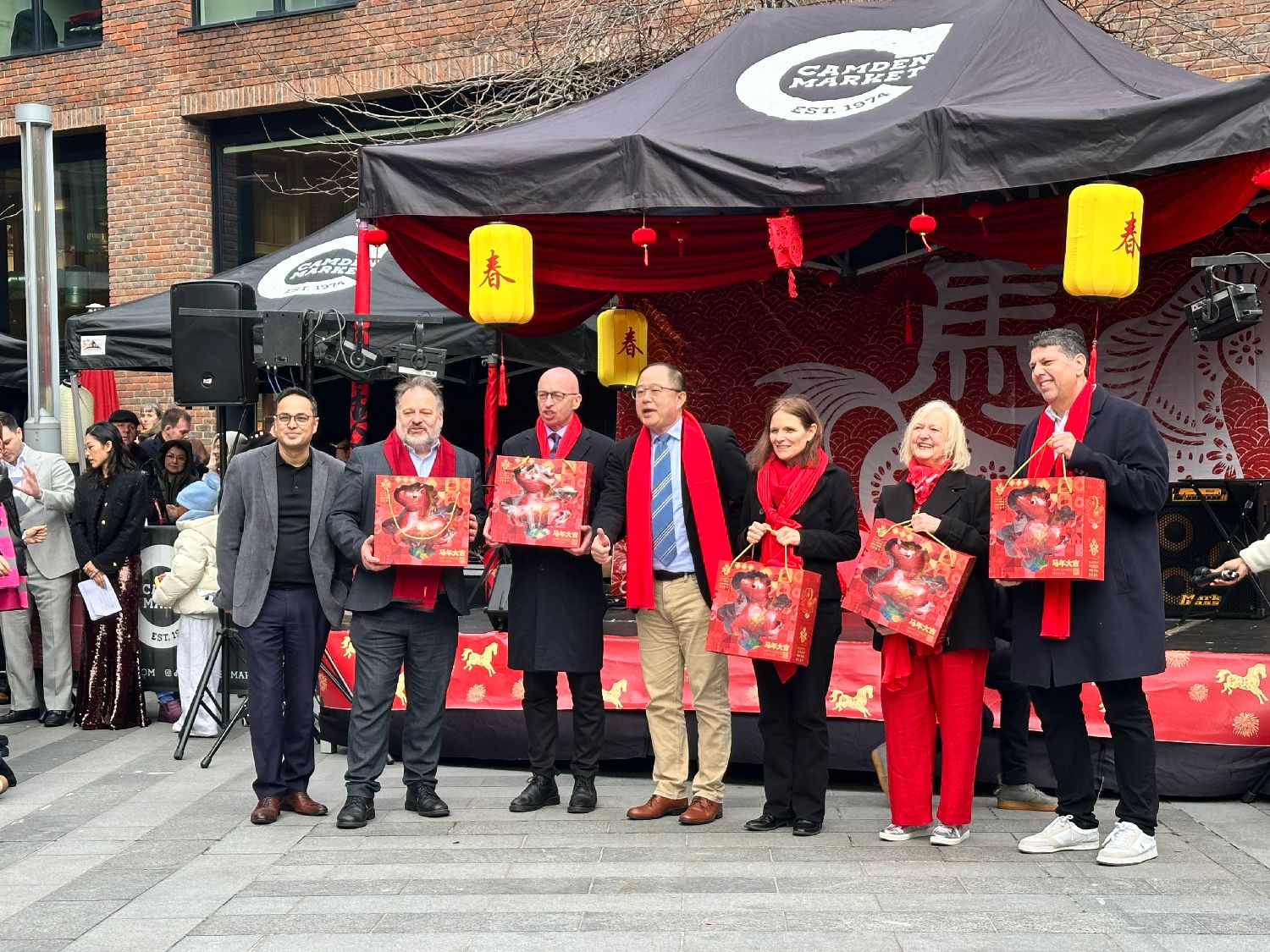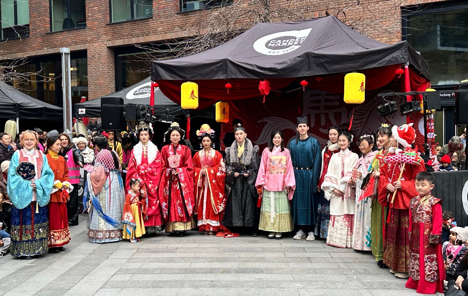当地时间2月21日,英国伦敦卡姆登集市举办中国春节庆典活动。坐落于伦敦西北摄政运河旁的卡姆登集市是伦敦最热门的旅游“打卡地”之一,这里汇集了许多时尚店铺和美食摊位,每天吸引大批游客到此观光。图为文艺表演的服装展示环节。中新社