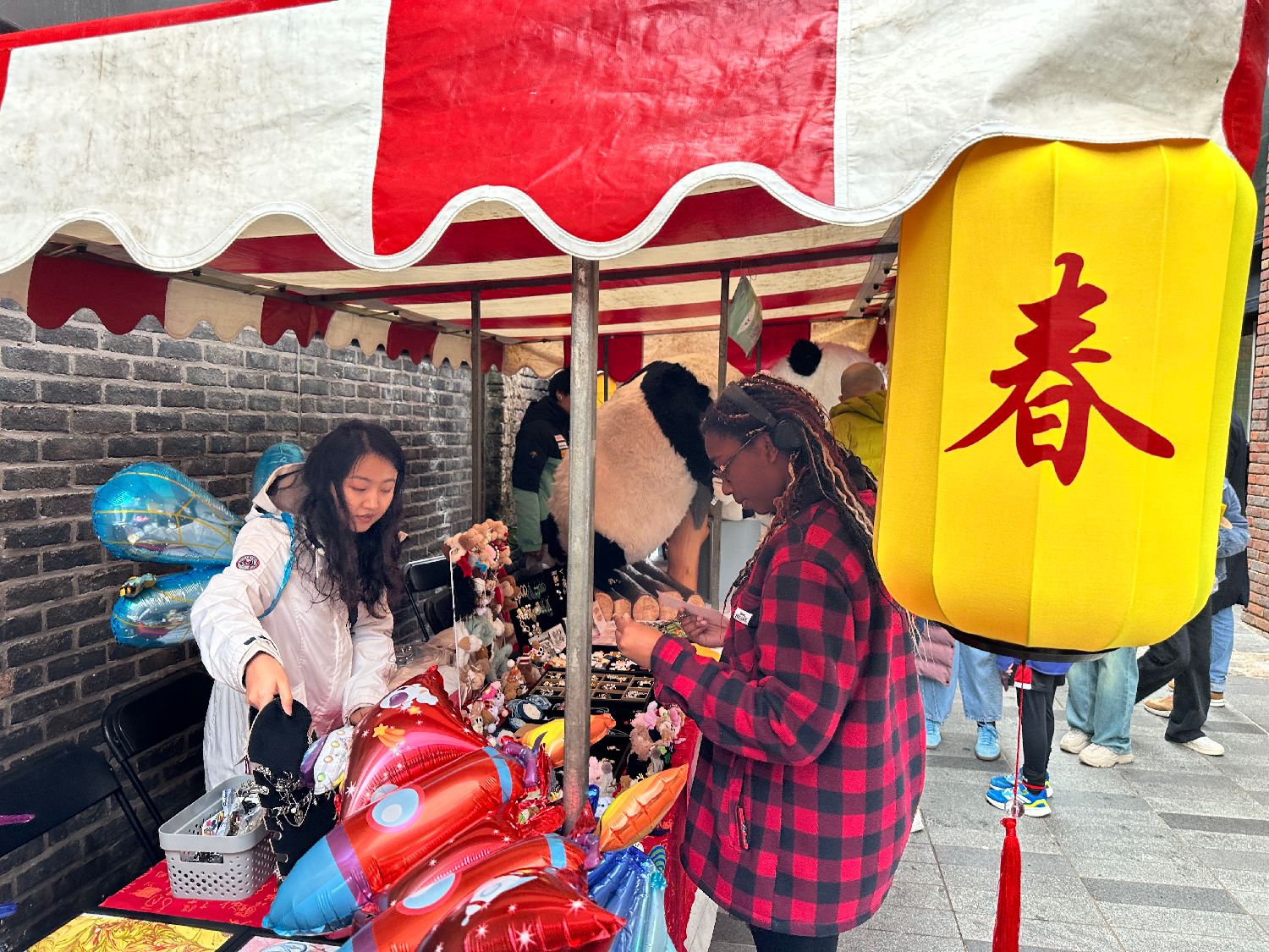 活动现场龙造型的充气装饰醒目亮相。中新社