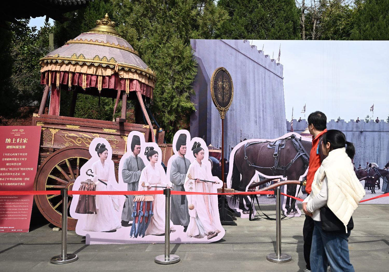 2月23日,游人在钱王祠了解纳土归宋剧情场景复刻。中新社