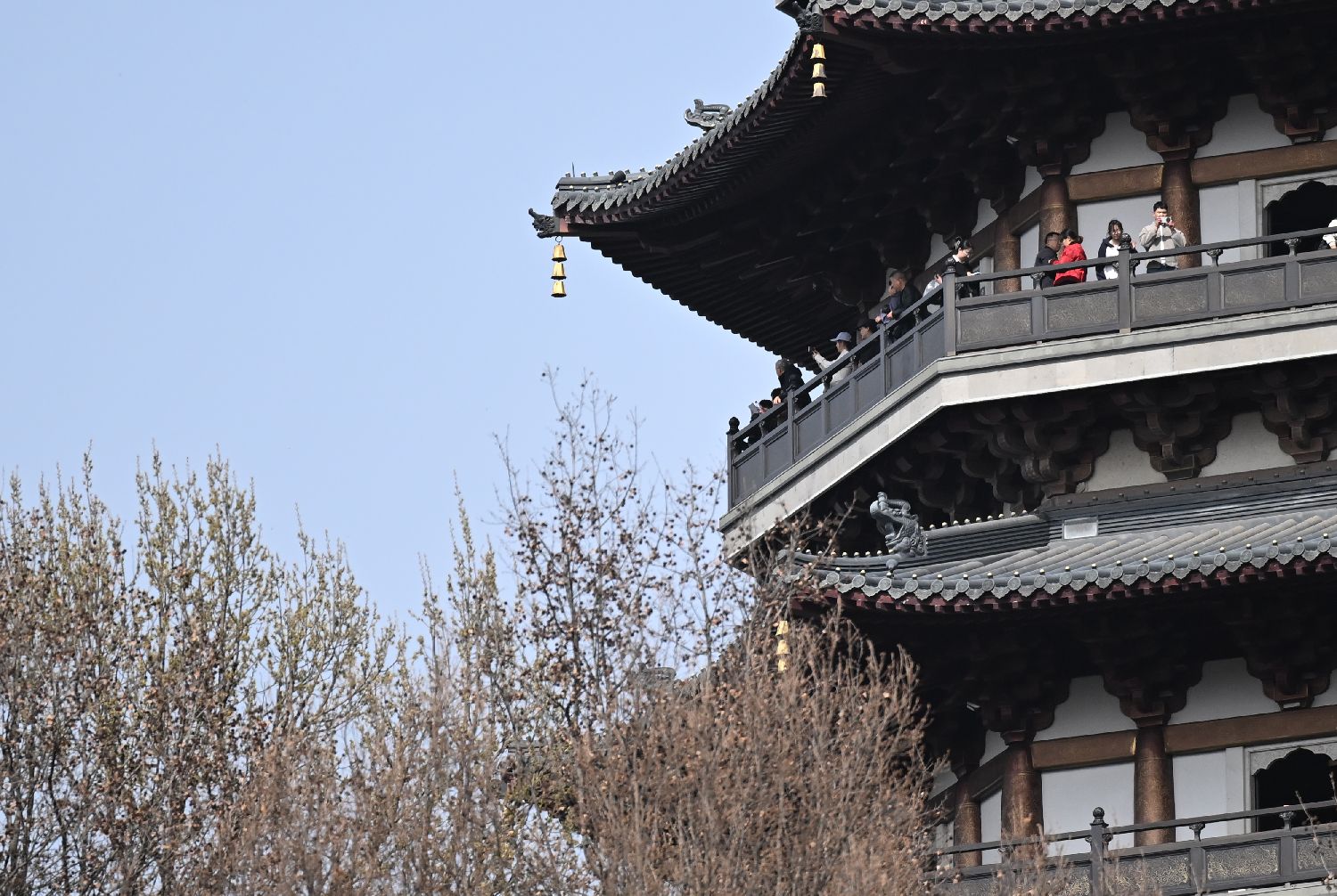 2月23日,游人登上雷峰塔欣赏西湖景色。中新社