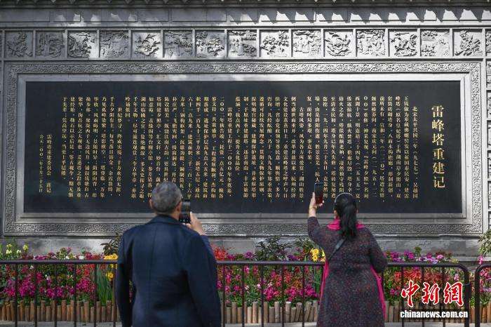 2月23日,游人了解雷峰塔的历史。中新网