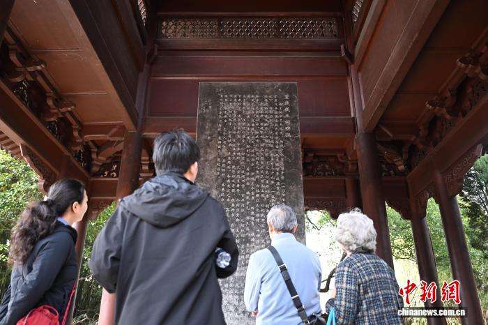 2月23日,游人在钱王祠了解其历史。中新网