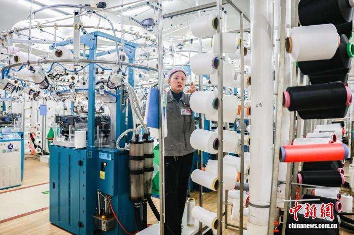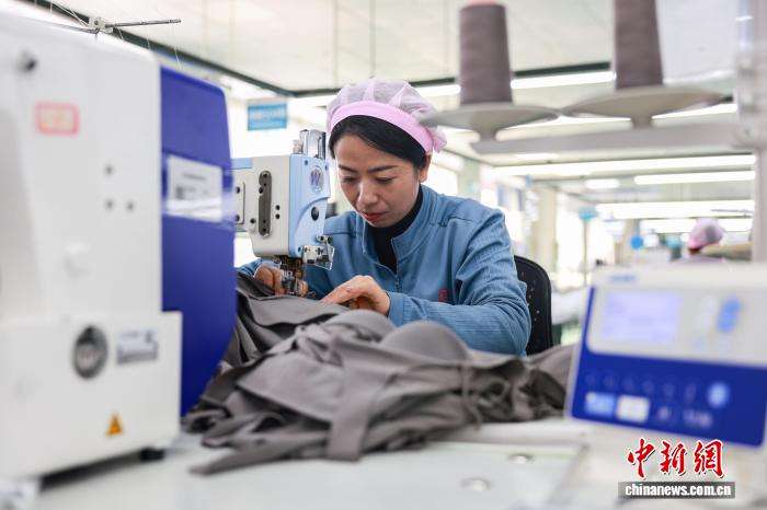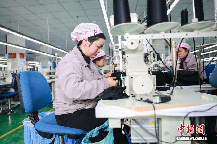 2月23日,贵州三穗经济开发区内的多家企业陆续开工,车间里机器转了起来,员工们也回到岗位,各条生产线井然有序,处处是繁忙而务实的生产景象,力争实现新年“开门红”。图为工人在三穗县一家服饰企业的生产车间赶制无缝针织服装订单产品。