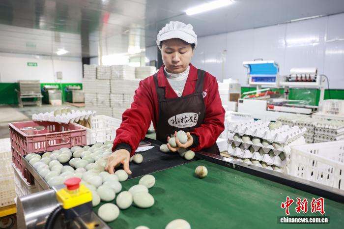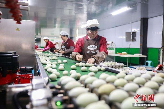 2月23日,工人在三穗县一家食品企业的生产车间赶制三穗鸭蛋产品。