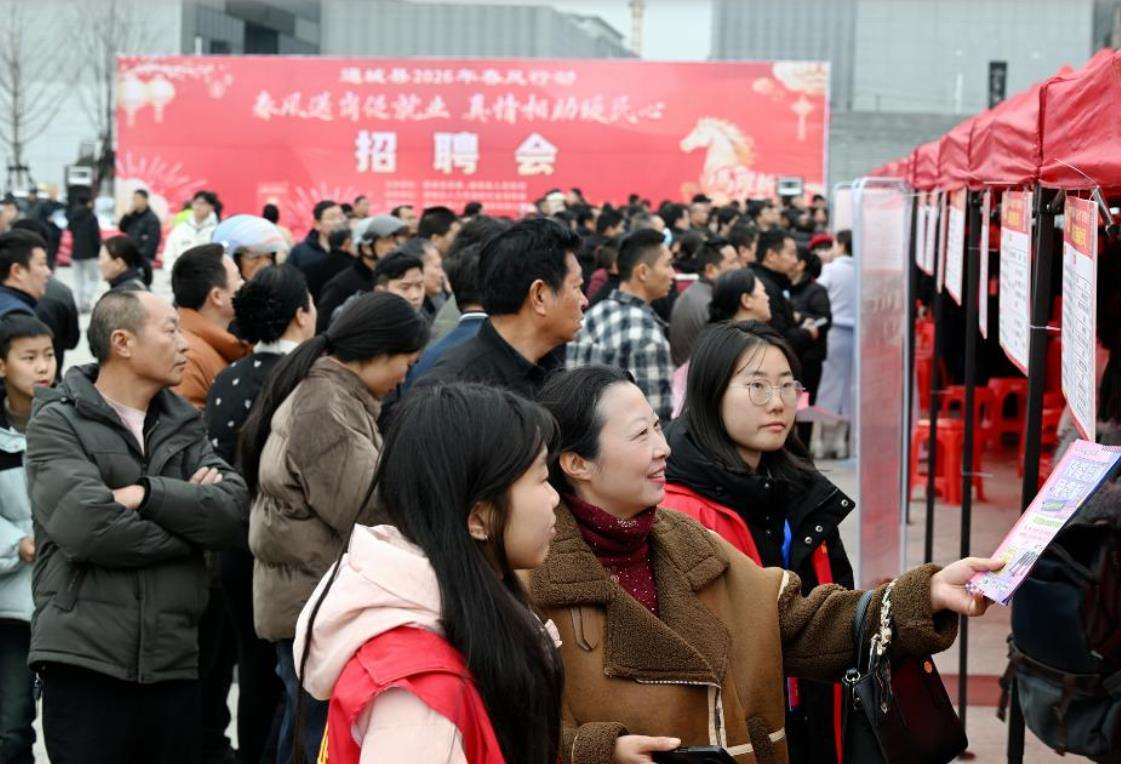 2月24日,重庆市2026年春暖农民工暨春风行动大型招聘活动在永川区人民广场启动。活动以“引老乡、回家乡、建家乡”为主题,永川区主会场1000余家企业提供3万余个岗位。当天,重庆各区县同步开展招聘活动,为返乡农民工及各类求职者搭建起高效精准的供需对接平台。据悉,本次招聘活动将持续到3月底,预计将举办1000场线上线下招聘会,发布30万个就业岗位。图为永川招聘活动现场。中新社