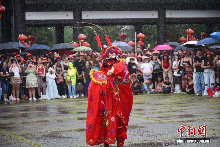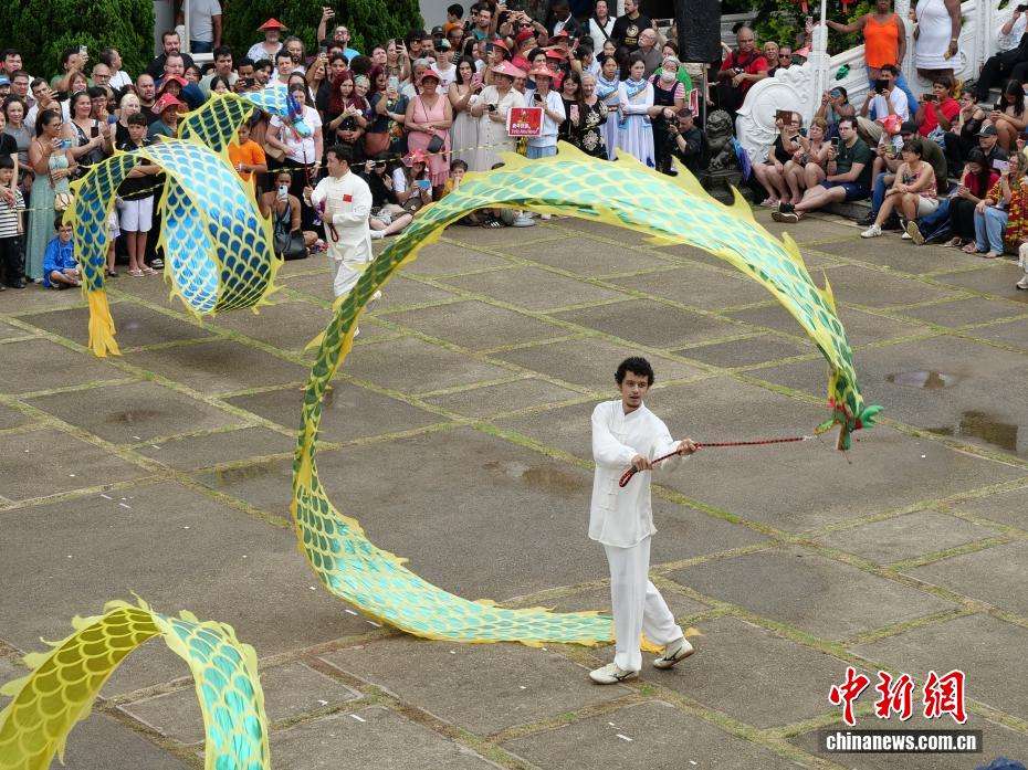 巴西坎皮纳斯州立大学孔子学院师生表演彩带龙。