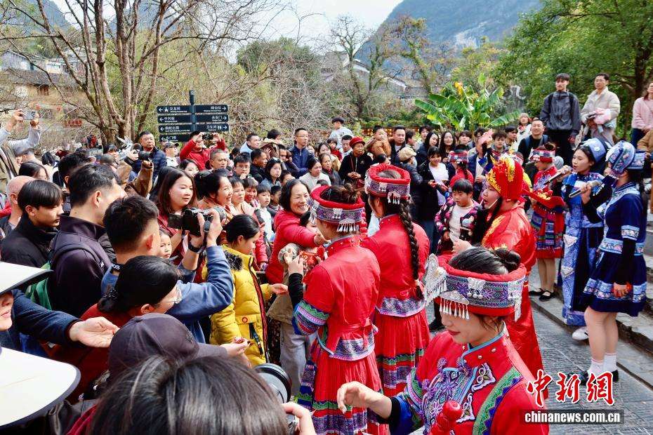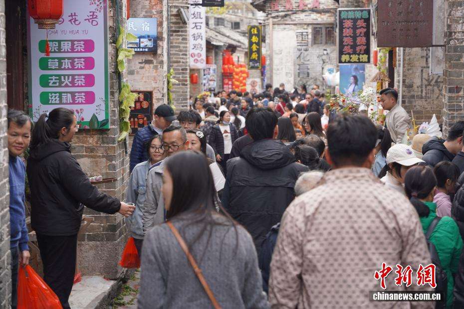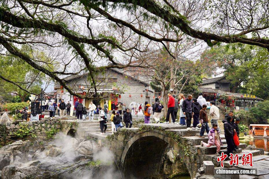 近日,广西贺州昭平县黄姚古镇迎来客流小高峰,游客漫步青石板路,“打卡”古桥、古巷,沉浸式感受千年古镇的独特韵味。新春期间,景区围绕传统年俗打造沉浸式体验项目,推出壮瑶阿哥迎宾、财神巡游、民族舞蹈等特色活动,让游人在青砖黛瓦间感受浓郁年味。图为游人新春逛古镇。