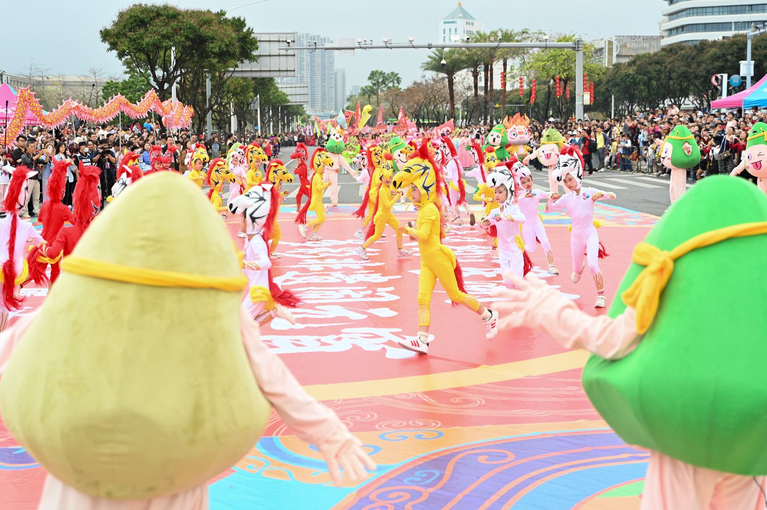 3月1日,“广府风韵汇星湖多彩非遗闹元宵”2026肇庆广府文化庙会非遗巡游活动在广东肇庆七星岩东门广场举行,传统舞蹈、民俗技艺等主题的25个方阵队伍先后登场,向市民和游客奉上一场充满广府味道、满载传统年味的特色文化盛宴。图为活动上的“奔腾小马裹蒸娃”方阵。中新社