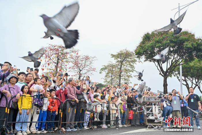 活动上的放飞和平鸽环节。中新网