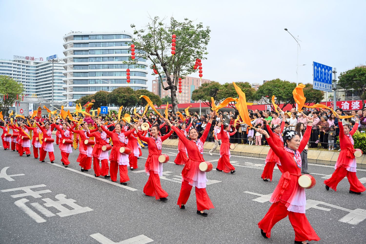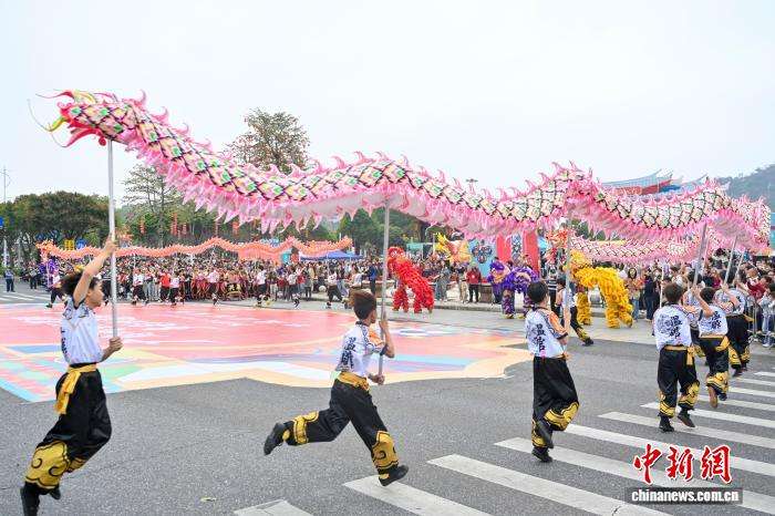 活动上的“龙狮腾跃贺元宵”方阵。中新网