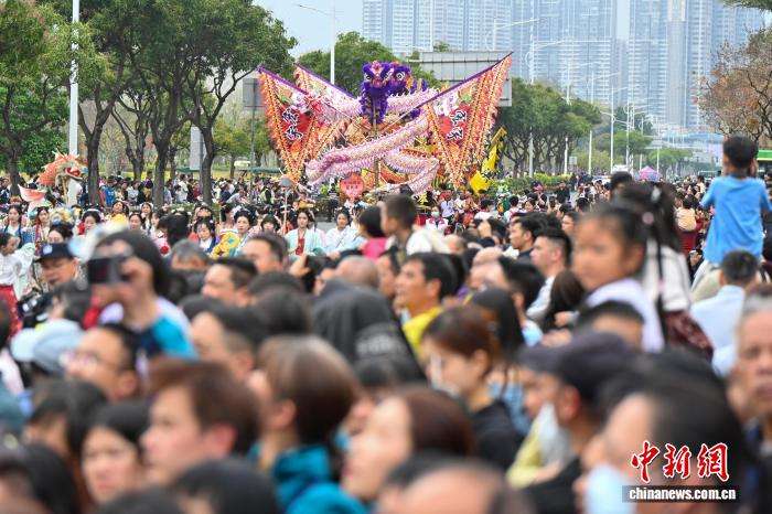 市民游客观赏巡游展演。中新社
