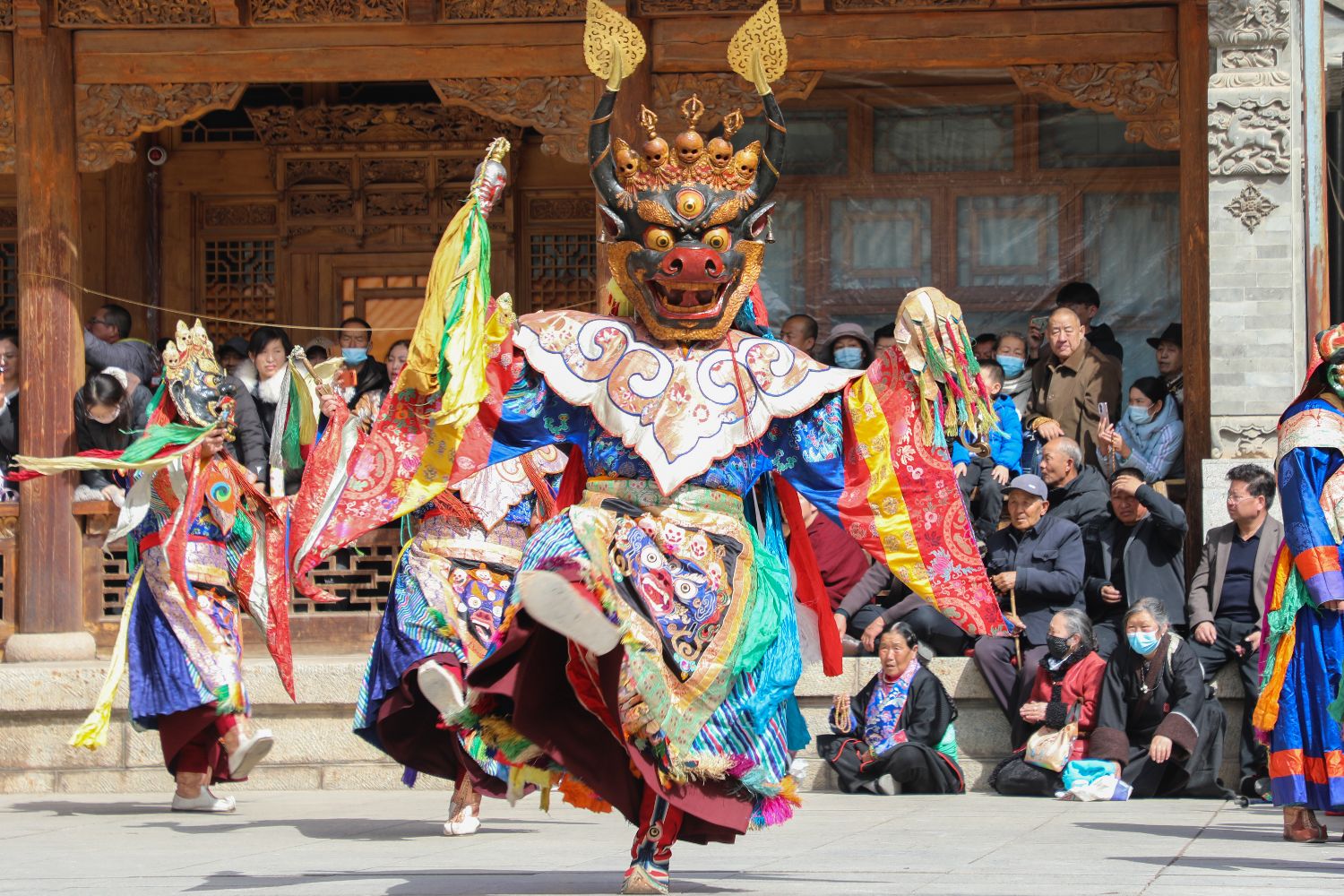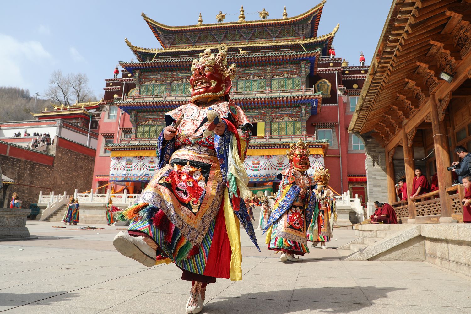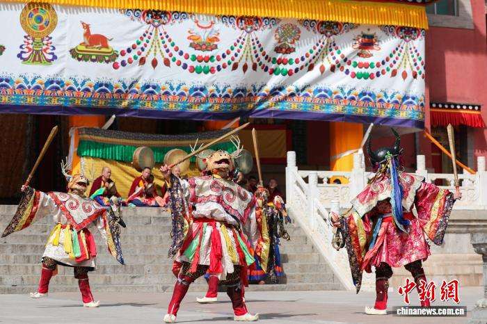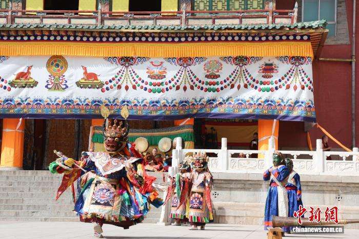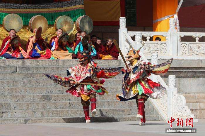 僧人佩戴面具表演。中新网