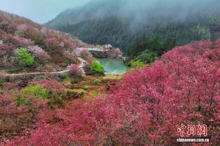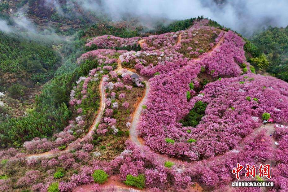 2月28日,大田县武陵乡樱花竞相绽放,景致美不胜收。中新网