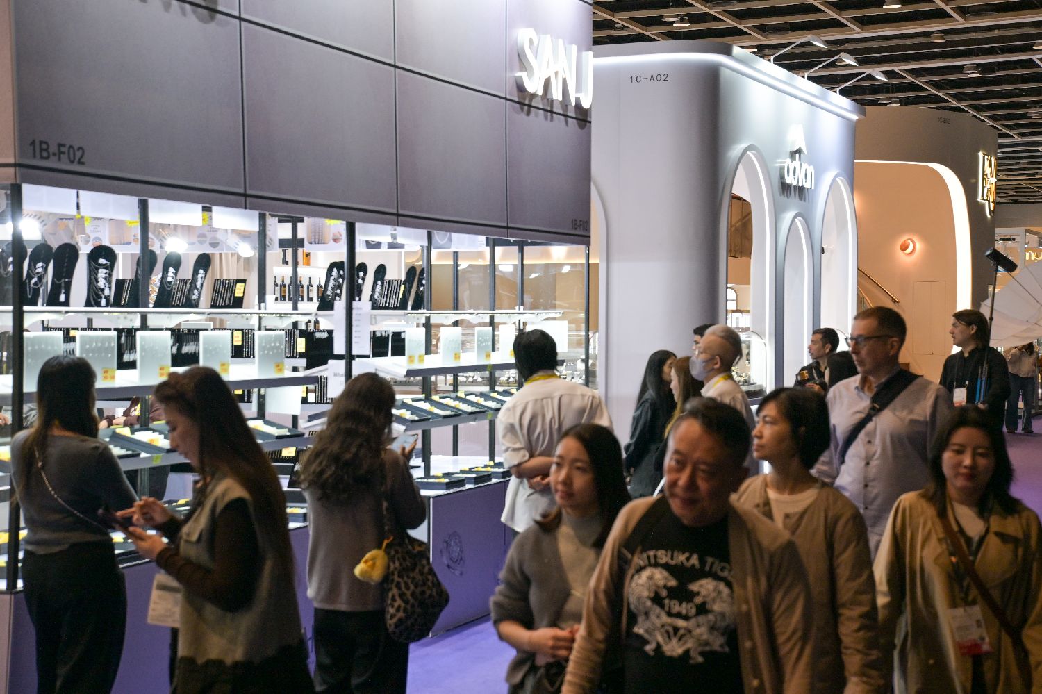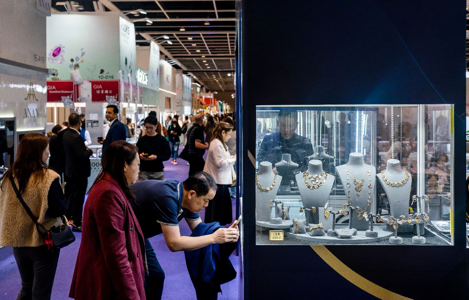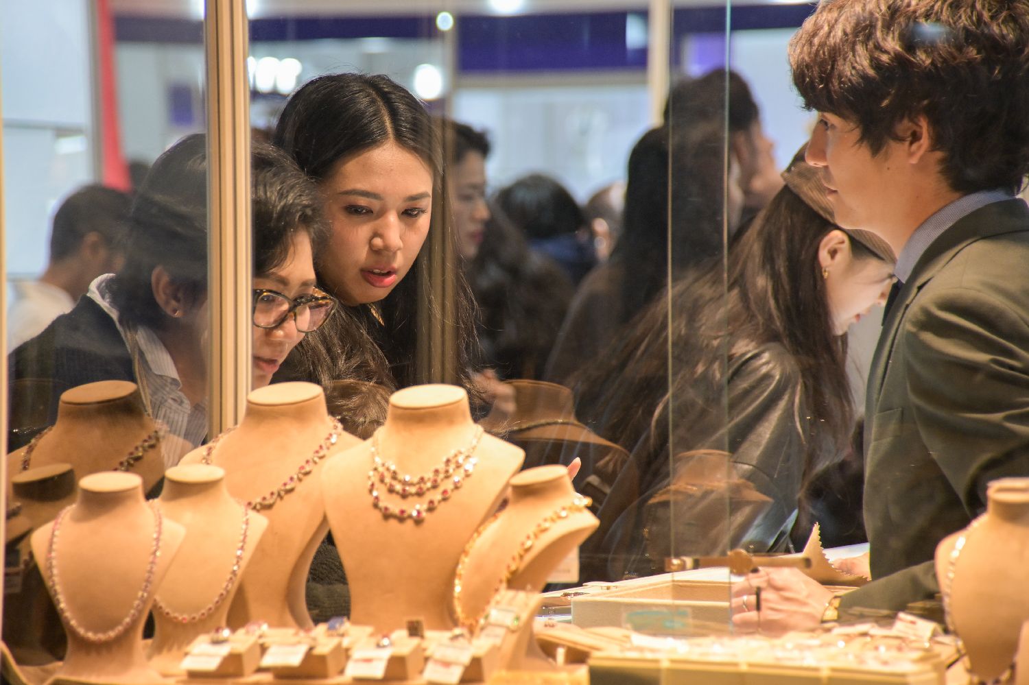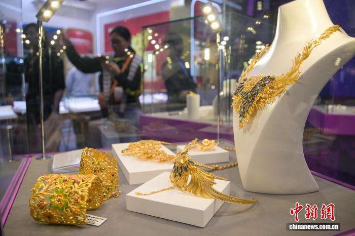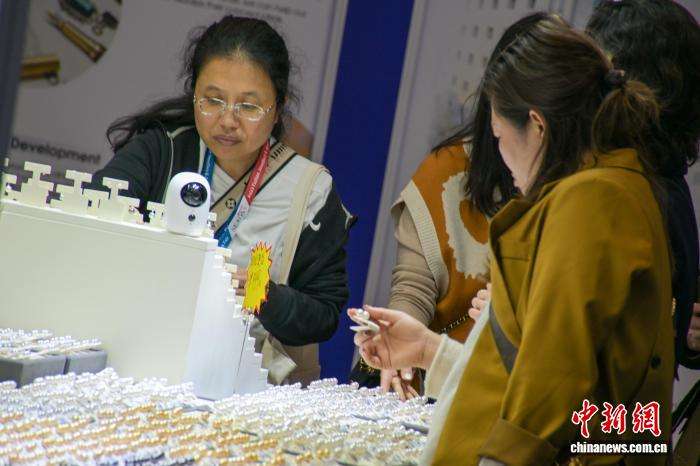 展会现场人流不断,珠宝展位吸引众多买手驻足参观。香港中通社
