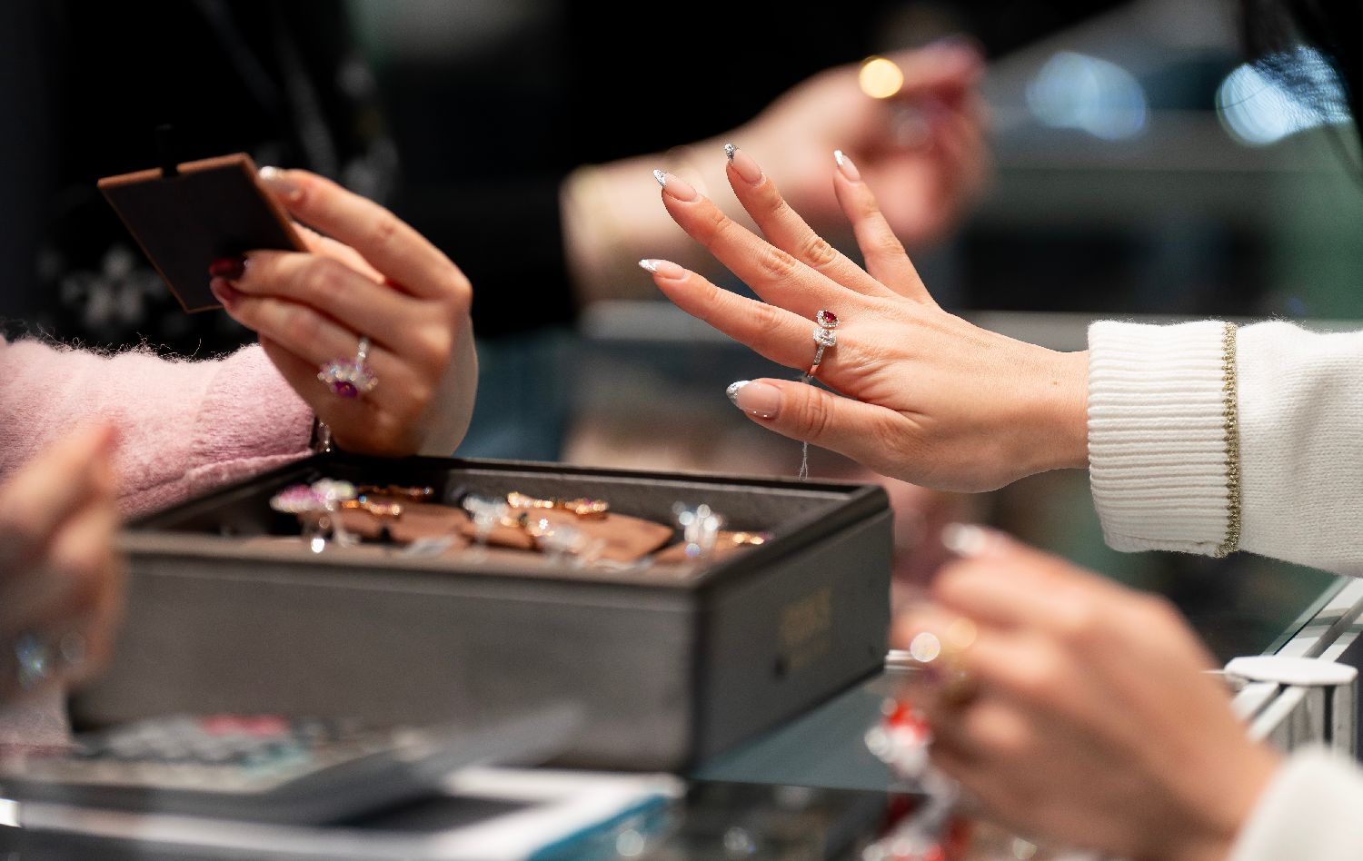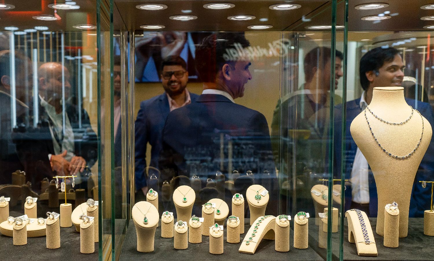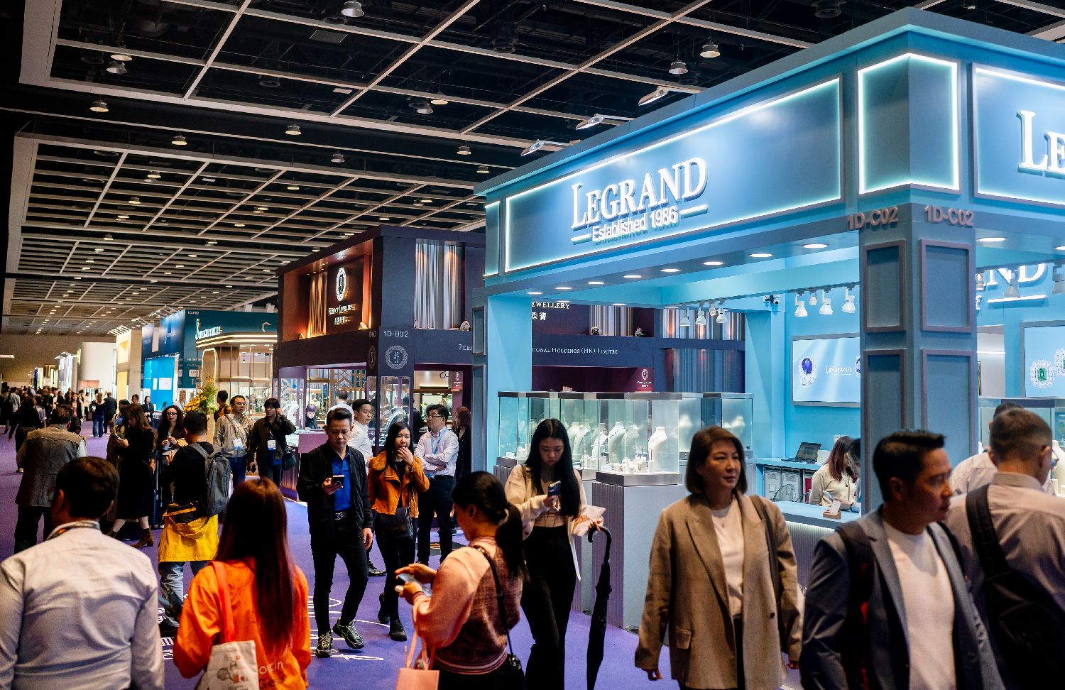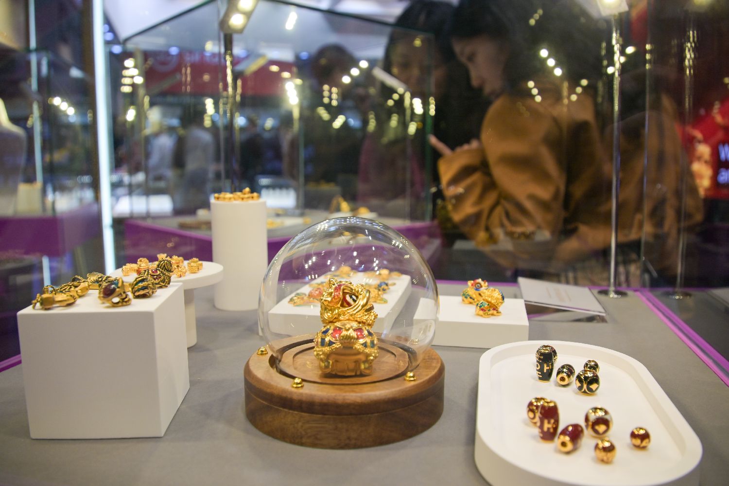 展会现场人流不断,珠宝展位吸引众多买手驻足参观。香港中通社