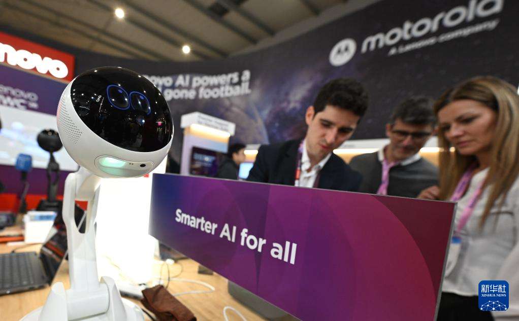 在西班牙巴塞罗那举办的以“智能时代”为主题的2026年世界移动通信大会上,来自中国的技术精彩亮相,在人工智能、云平台、光通信、工业机器人等领域展示了中国技术的实力。图为3月3日,人们参观荣耀机器人手机。