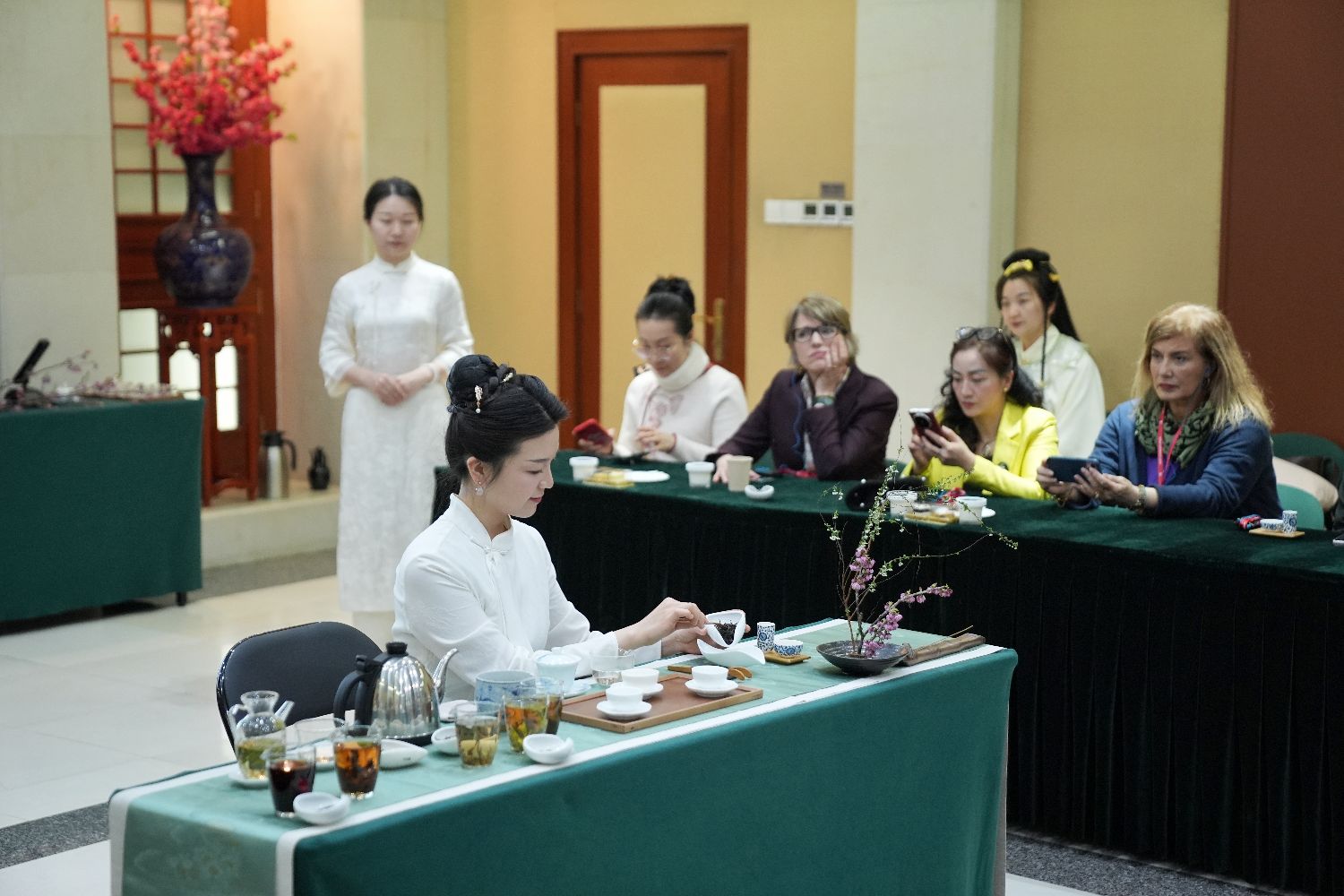 3月5日,“三八”国际妇女节来临之际,来自比利时、土耳其、希腊、智利、摩洛哥等24个国家的驻华大使夫人在北京参加大使夫人茶美学品鉴活动,以茶为媒,共话文化交流互鉴。