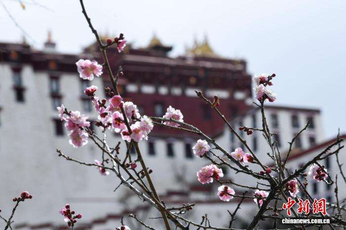 3月8日,拉萨宗角禄康公园,桃花竞相绽放。中新网
