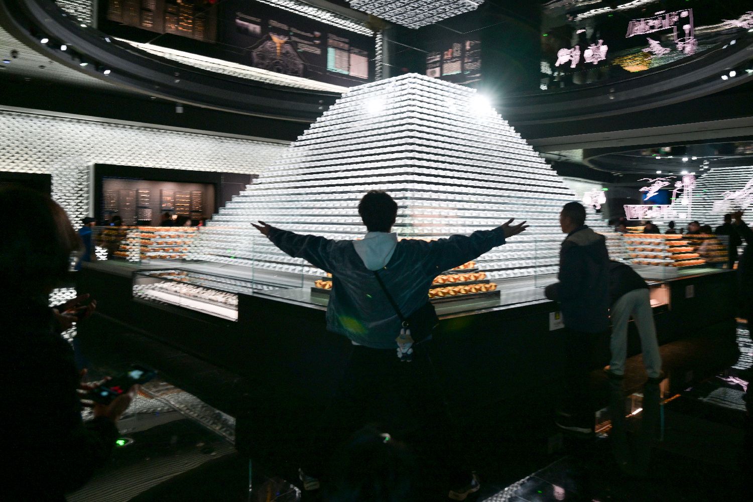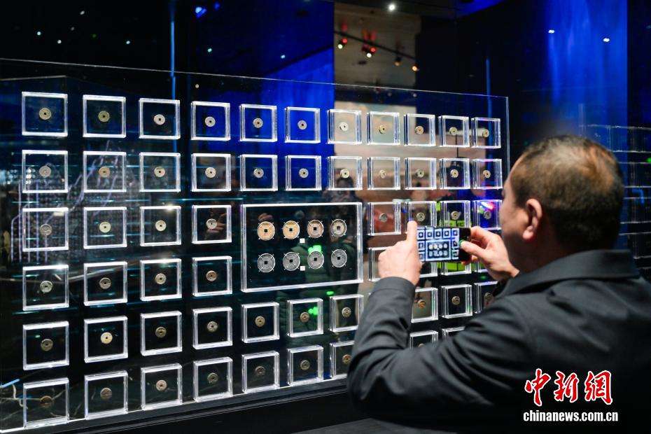 博物馆展厅内的大小金银锭吸引参观者。中新社