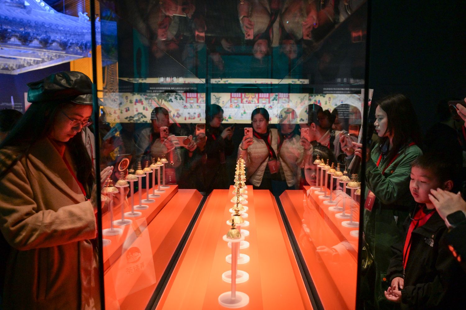 参观者手机拍摄展陈的“西王赏功”金银币。中新网