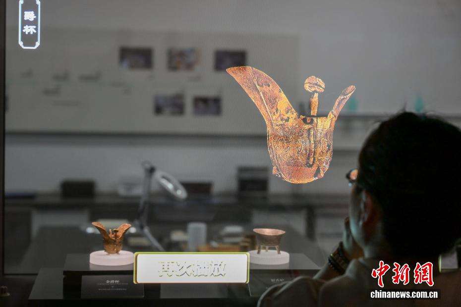 博物馆内金爵杯和三维动画介绍吸引参观者驻足。中新网