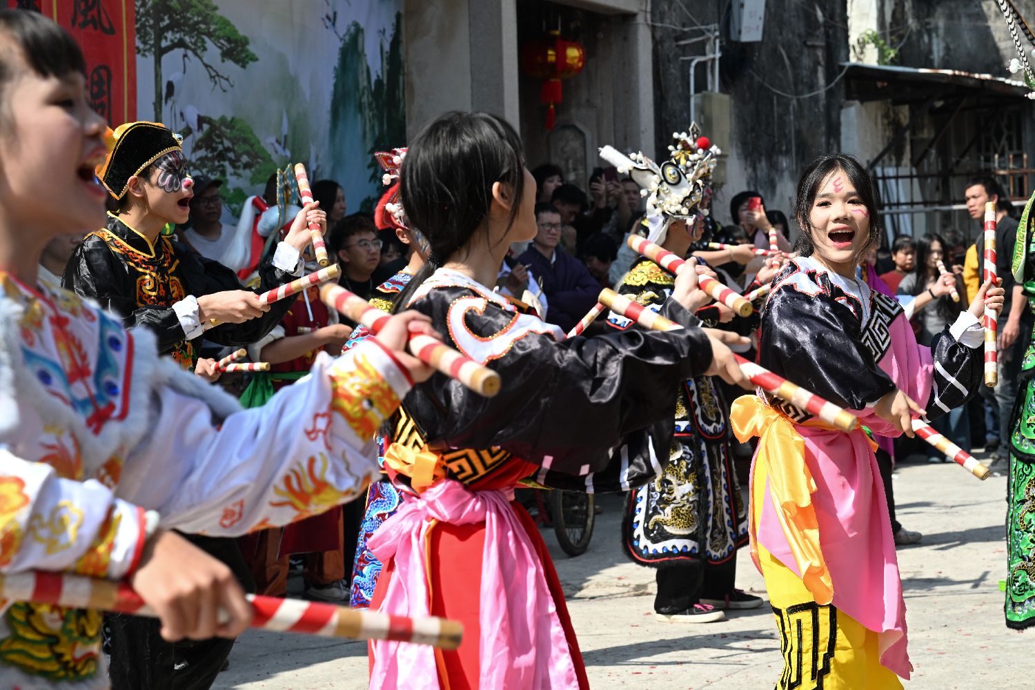 3月8日,大寨仙圃青年英歌队在广东省潮州市金石镇辜厝村表演,展现英歌舞的魅力和风采。中新网