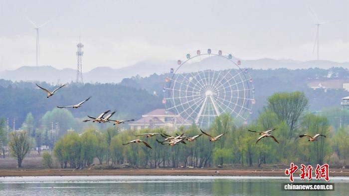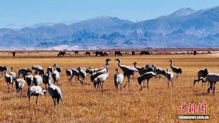 春回大地,候鸟北归。近日,地处柴达木盆地的青海省海西蒙古族藏族自治州都兰县,迎来首批中国国家二级重点保护野生动物灰鹤;贵州省毕节市威宁彝族回族苗族自治县草海国家级自然保护区,黑颈鹤集结北迁,勾勒出一幅生机盎然的春日迁徙图景。图为3月10日,在柴达木盆地的青海都兰县,灰鹤在湿地中嬉戏。
