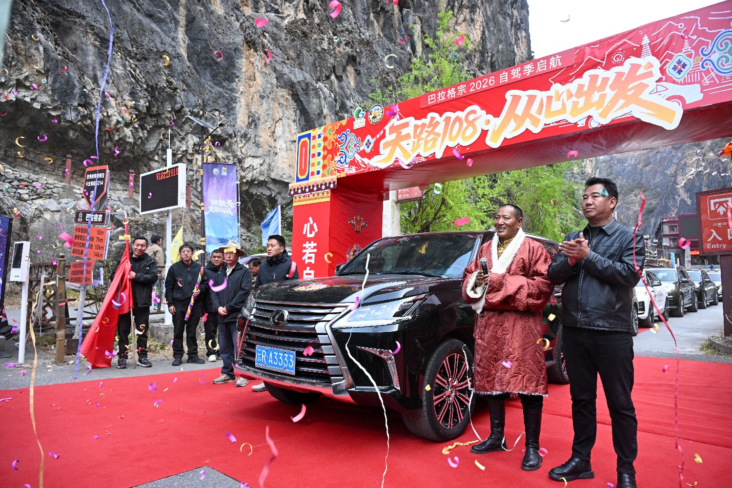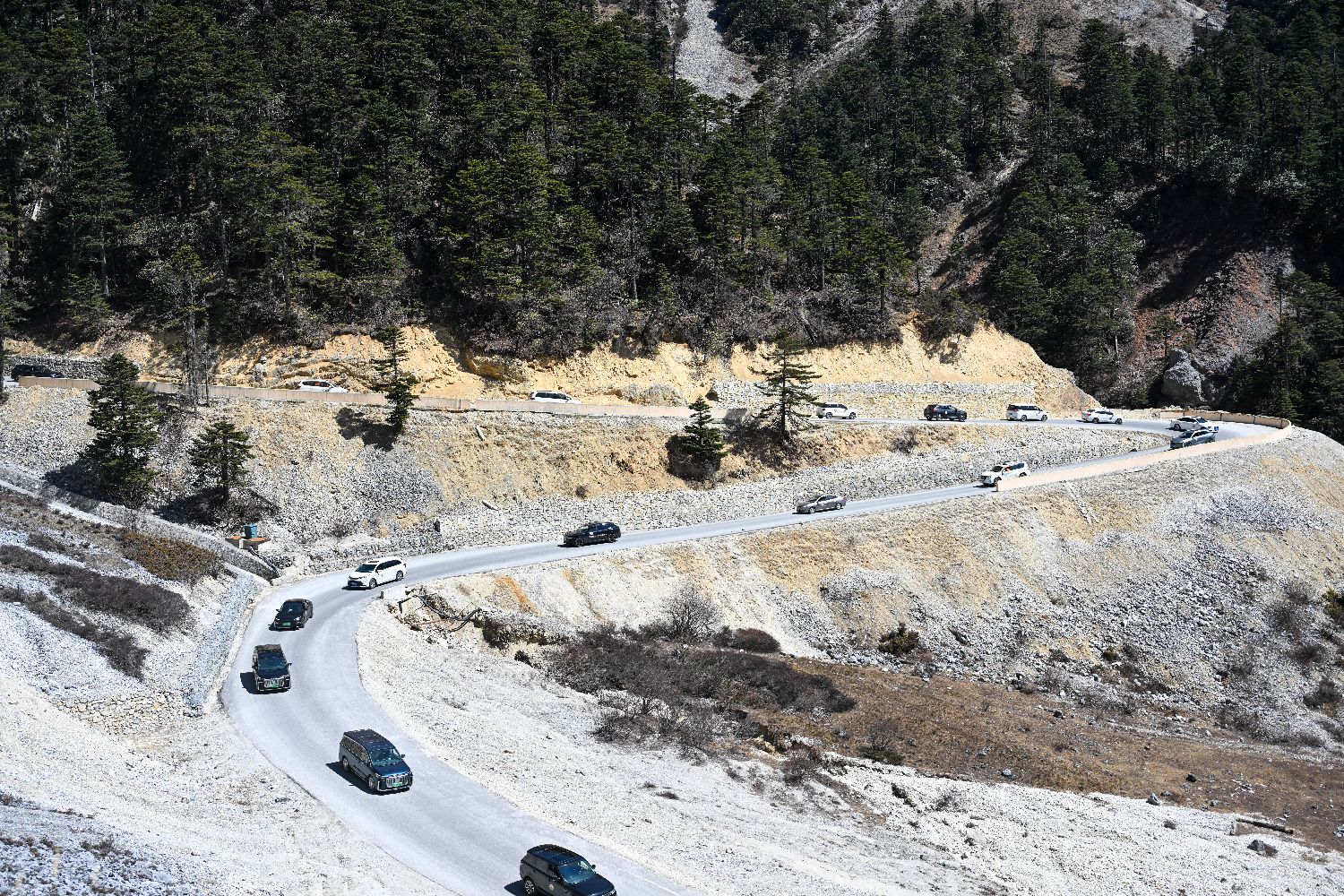 3月11日,位于云南省迪庆藏族自治州香格里拉市的巴拉格宗景区开放游客自驾车辆进入景区核心区域,以“天路108·从心出发”为主题,自驾爱好者在穿梭峡谷天路中,体验“有一种叫云南的生活”。图为参与自驾的车辆有序出发。中新社