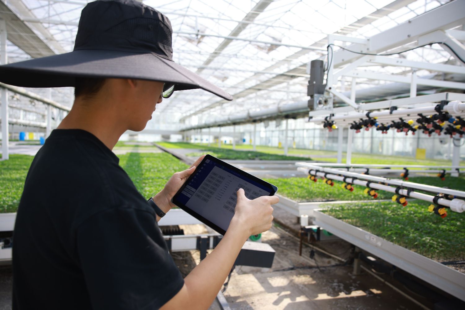 3月11日,在浙江嘉兴桐乡石门镇数字化种苗工厂内,工作人员在操作智能水肥药喷灌系统。中新社