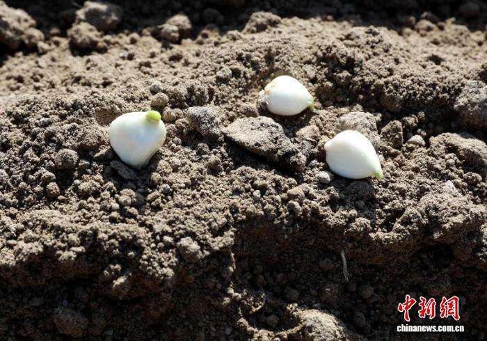 山西柳林穆村镇,蒜农抢抓农时种植紫皮蒜。中新网