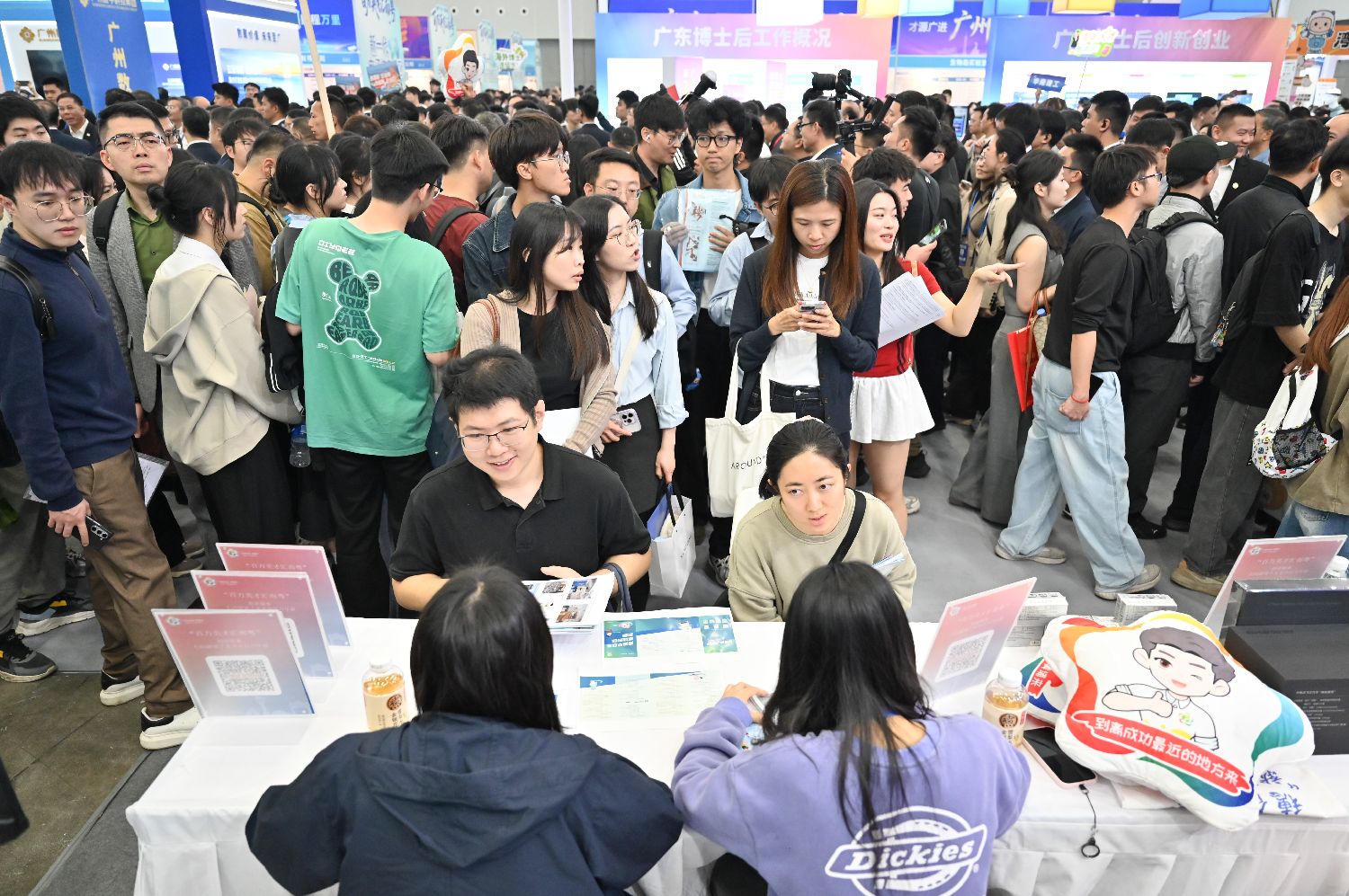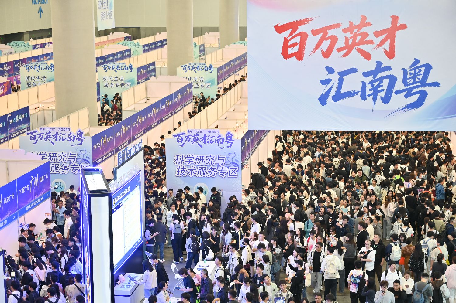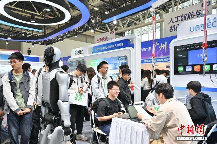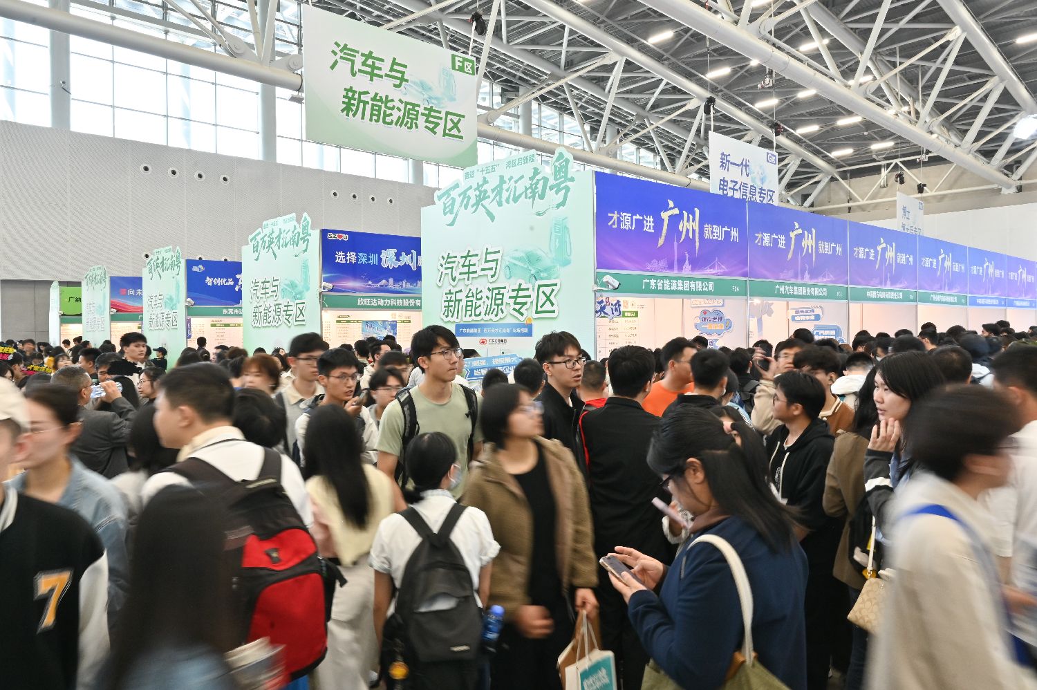 3月15日,“百万英才汇南粤”2026春季大型综合招聘会在广州广交会展馆开幕。本次招聘会以“粤聚英才 粤见未来”为主题,以“先进制造”与“现代服务”的双馆分区联动模式,汇聚近2000家单位,提供超8.5万个岗位。图为求职者在人工智能与机器人专区寻找工作机会。中新网